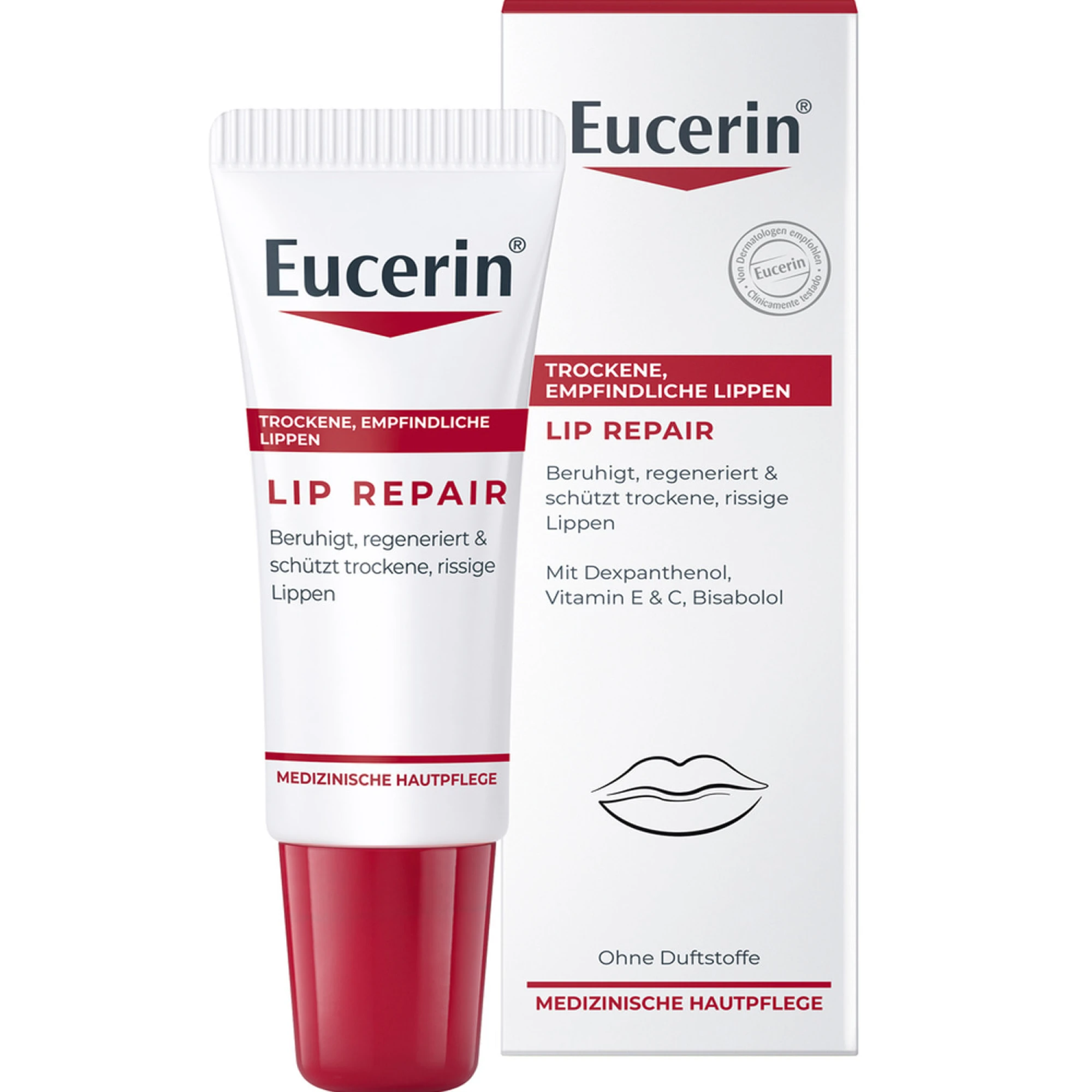 Бальзам Eucerin рятує ситуацію навіть при атопії, екземі чи псоріазі губ. Він містить декспантенол, натуральні воски та ліпіди, що імітують власний захисний шар шкіри губ. Швидко сприяє загоєнню та поверненню до комфорту.