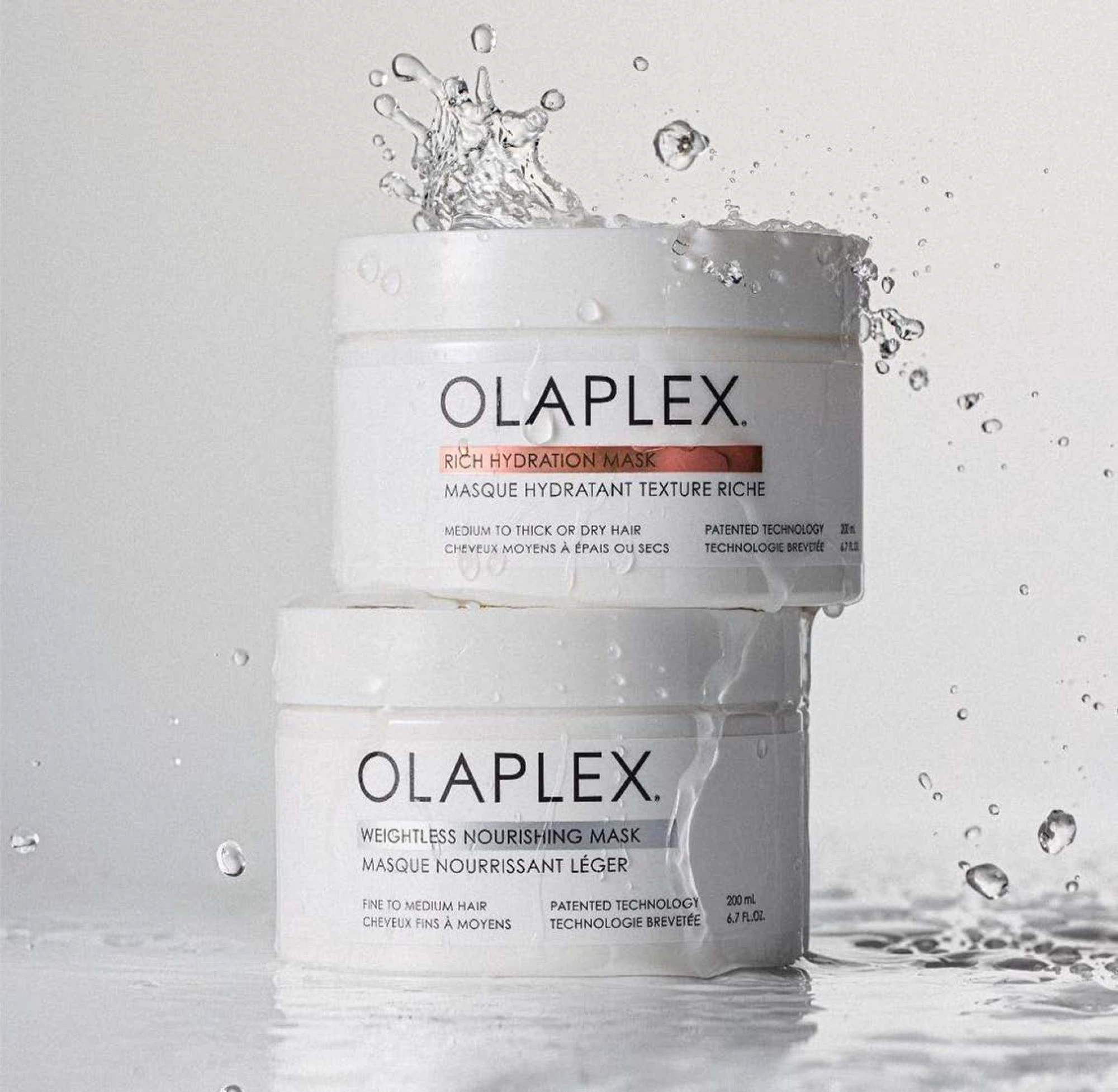 Обидві маски побудовані на біоміметичній технології Olaplex, яка запечатує кутикулу та працює накопичувально — результат не зникає після першого миття, а покращується з часом