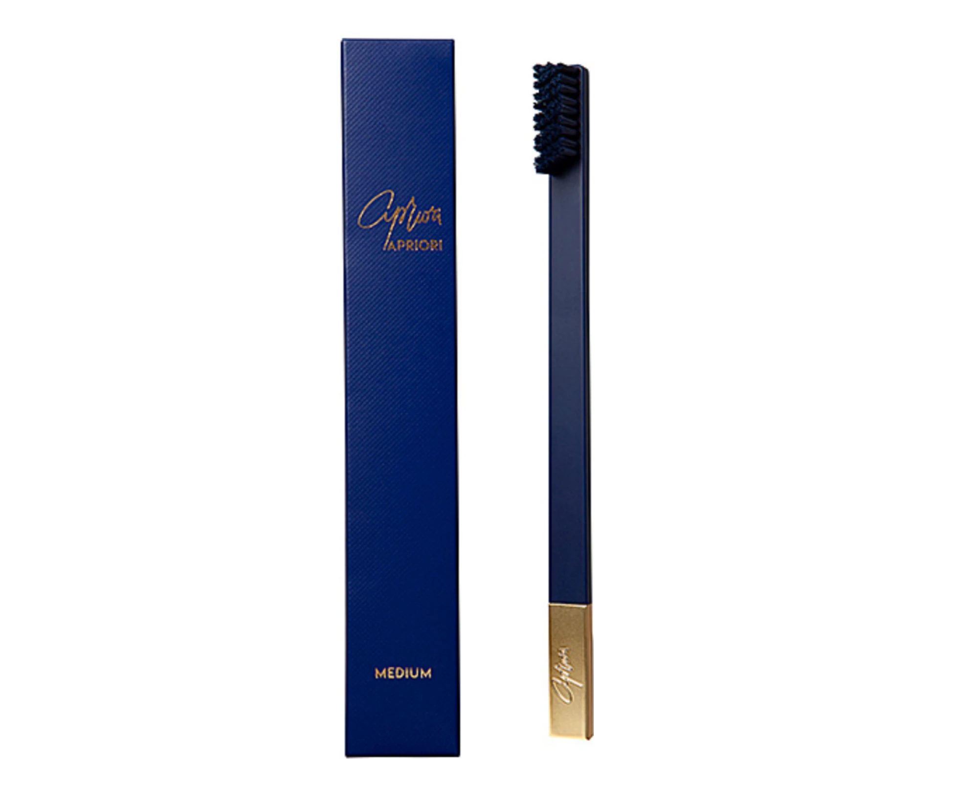 Навіть зубна щітка може бути елементом стилю — Apriori це доводить. Її глибокий відтінок сапфірового синього, доповнений матовим золотом, перетворює звичну рутину на естетичний момент дня. Створена у співпраці зі стоматологами, щітка делікатно очищує, зберігаючи баланс між ефективністю та турботою про ясна.