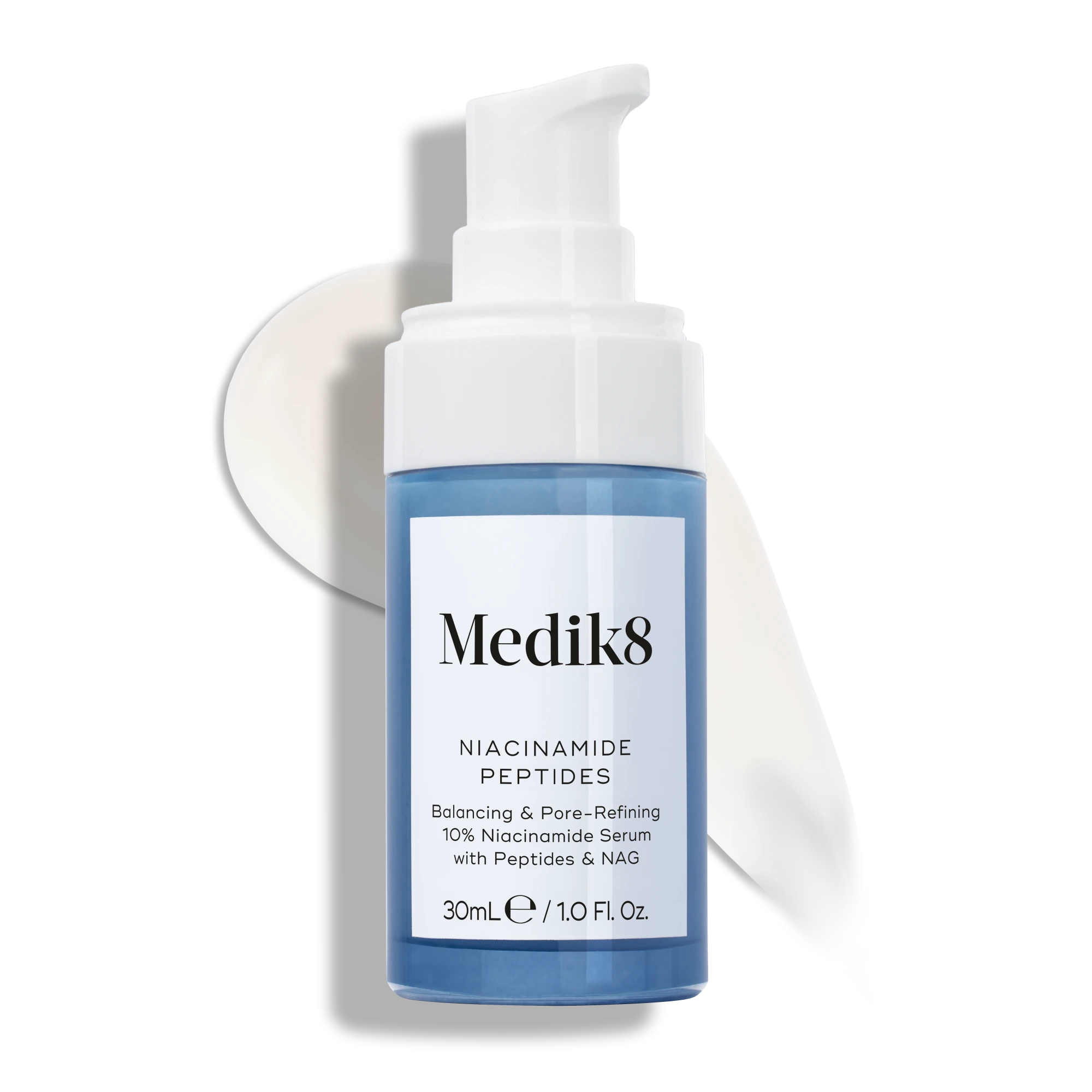 Коли тьмяність поєднується з розширеними порами, нерівною текстурою і слідами постакне, потрібна формула, яка враховує всі ці аспекти. У новій сироватці Medik8 Niacinamide Peptides поєднані 10% ніацинаміду, пептиди та цинк PCA. Саме ця комбінація поступово «очищає» загальну картину шкіри. Ніацинамід вирівнює тон, зменшує почервоніння та допомагає освітлити постзапальну пігментацію, завдяки чому обличчя виглядає більш чистим і світлим. Пептиди підтримують процеси оновлення і покращують текстуру, роблячи поверхню рівнішою, а цинк PCA регулює вироблення себуму і зменшує відчуття закоркованих пор, через які шкіра часто виглядає тьмяною та застійною. Вже за тиждень пори стають менш помітними, тон — більш однорідним, а світло відбивається рівніше, створюючи той самий ефект здорового, прозорого сяйва без жирного блиску.