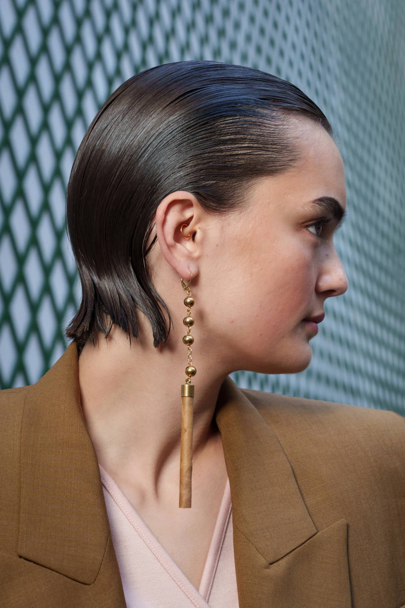 Окрема модна варіація сезону — slicked-back bob з ефектом вологого волосся. Пасма зачесують назад і фіксують засобом із блиском, залишаючи характерний «мокрий» фініш. Саме такий варіант команда Kérastase називає укладкою з подіумним характером. У відео бренду кріейторка Вайолет Ґрейс демонструє просту формулу: два натискання Elixir Ultime L’Huile Originale — і стрижка виглядалє більш зібраною й чіткою.
