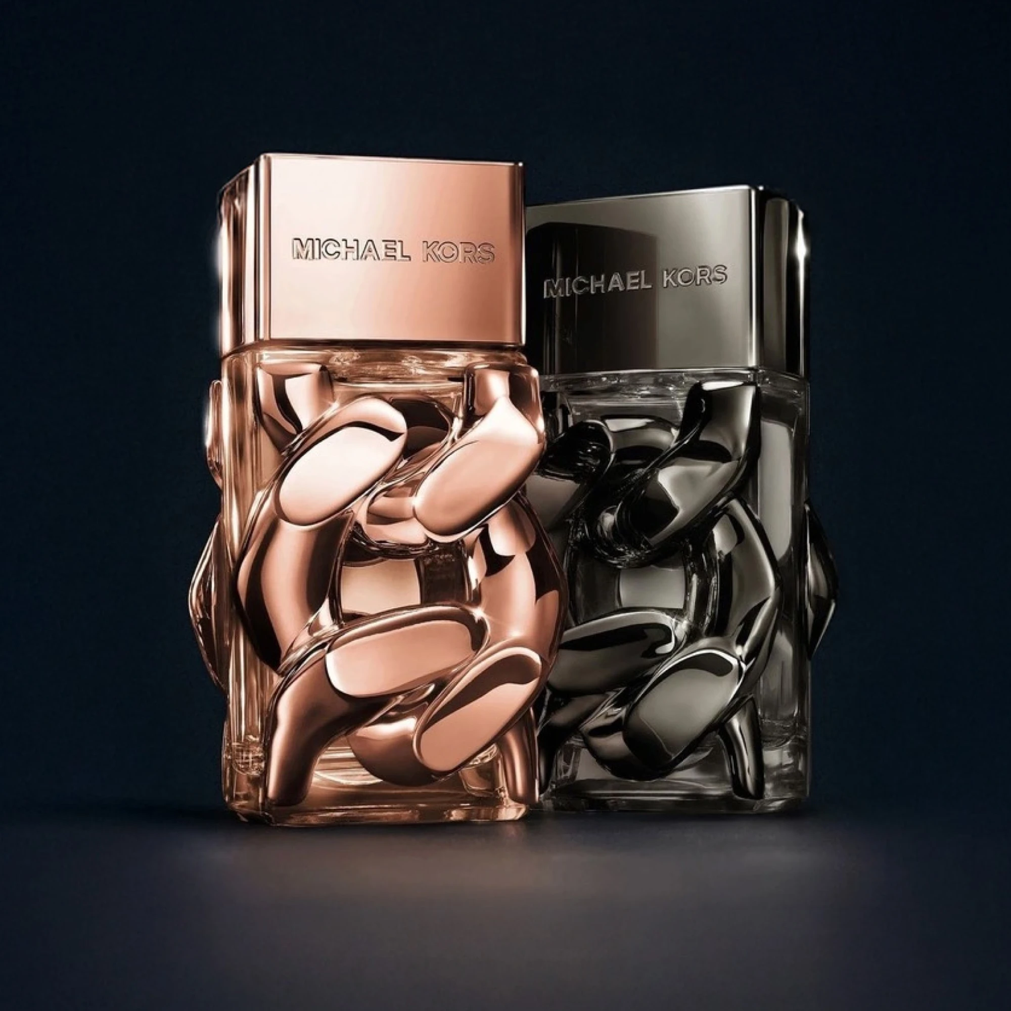 У 2025 році бренд переводить цей код у парфумерну площину і представляє дует ароматів Michael Kors Абсолю для Неї та для Нього. Два відтінки металіку — рожеве золото й гарматна бронза — стають не просто кольорами флаконів, а характерами: жіночим і чоловічим, світлим і темним, м’яким і напруженим. Це гра на контрастах, у якій чуттєвість і сила взаємно підсилюють одна одну.