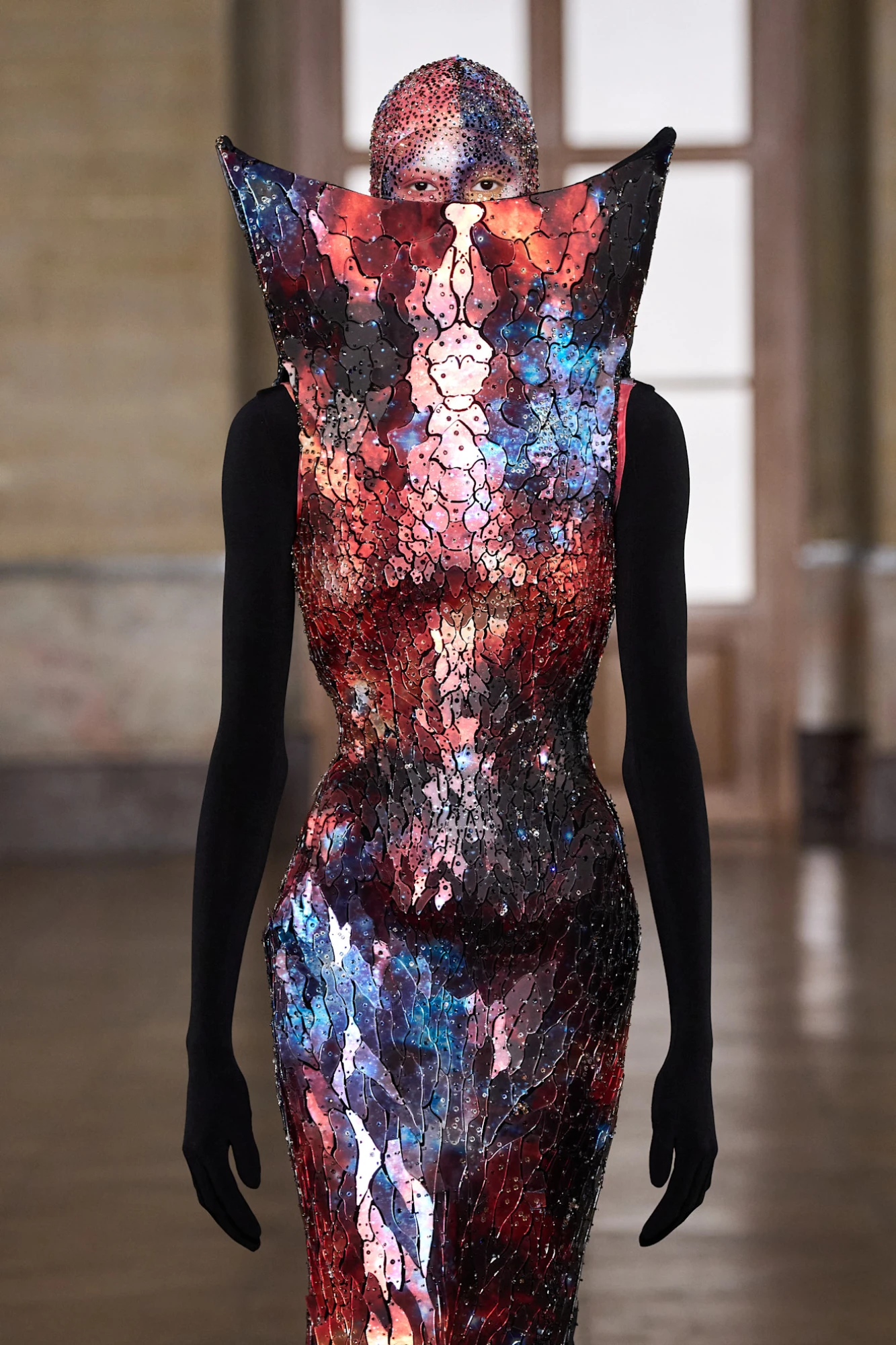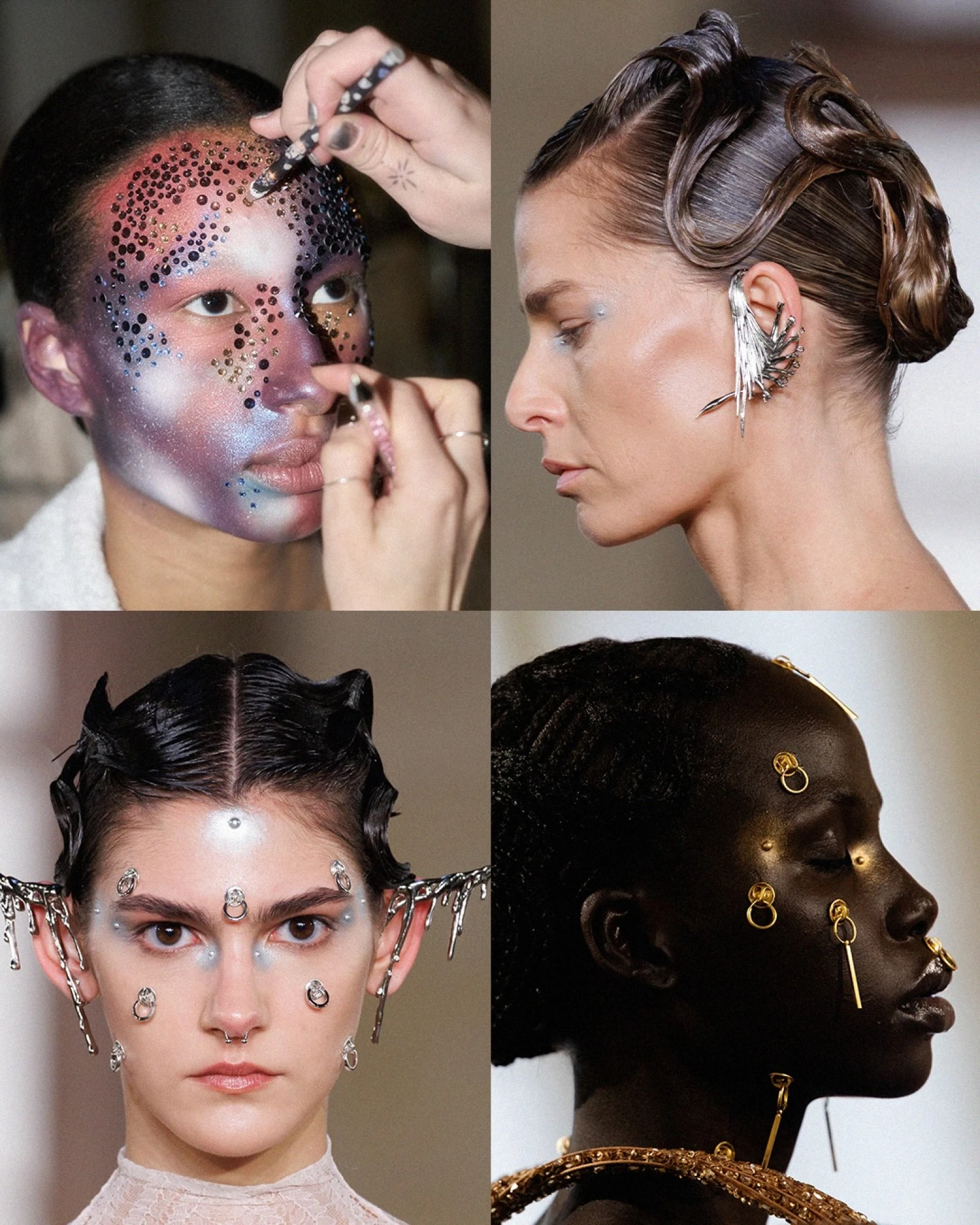 Як пояснює головна візажистка шоу Маріке Тібо, обличчя моделей сприймалися як простір для роботи зі світлом і формою: «Обличчя перетворилися на поверхні, промарковані космічною енергією. Плинна, позагендерна анатомія підсилювалася шарами ультравідбивних текстур».