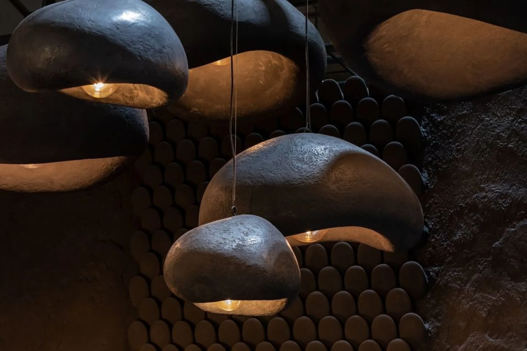 Лампи з авторської суміші українських глин, мармурового пилу та рослинних волокон; без випалу, з м’якою природною фактурою.