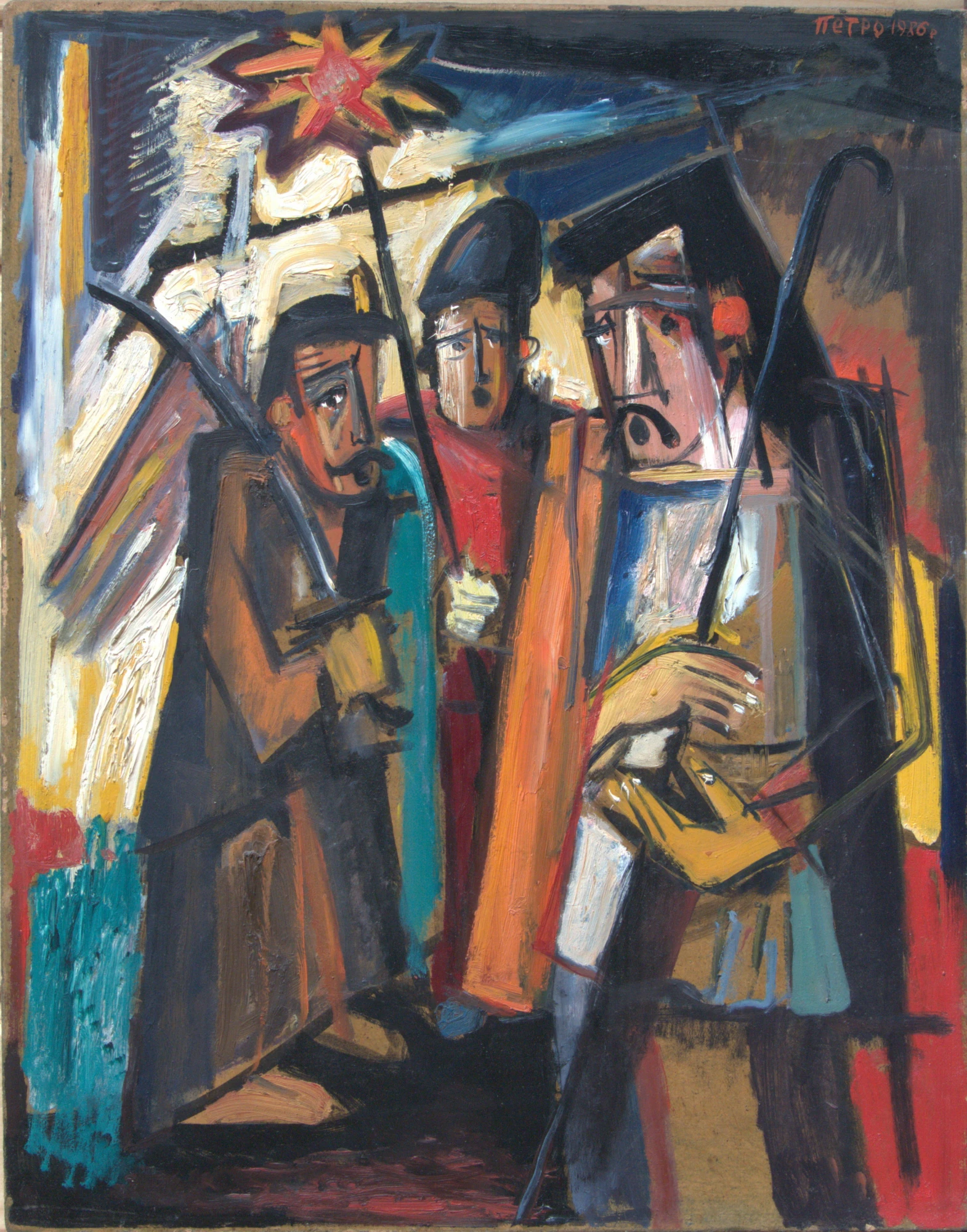 Олекса Шатківський у своїй мистецькій практиці активно працював з дослідженням теми українських традицій. «Коляда» — одна з трьох його робіт на різдвяну тематику, що представлені на виставці. На полотні зображено один із ключових елементів свята — колядування. Ми бачимо сільський зимовий пейзаж, впізнавану яскраву звізду та спокійні тони довкола. Після витіснення, підмін і заборон традиції святкування Різдва вдалося частково зберегти у селах.