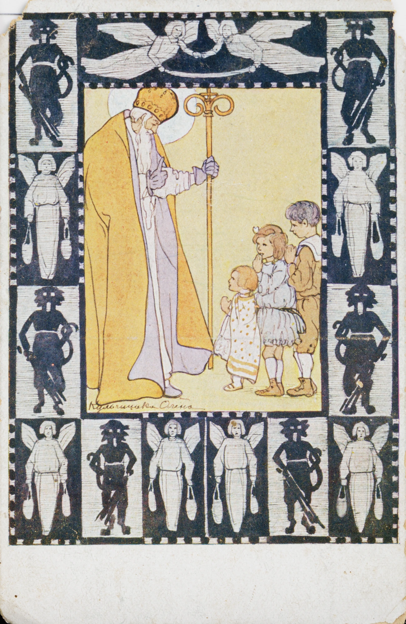 Олена Кульчицька. Різдвяна листівка «Святий Миколай і Крампус», 1916