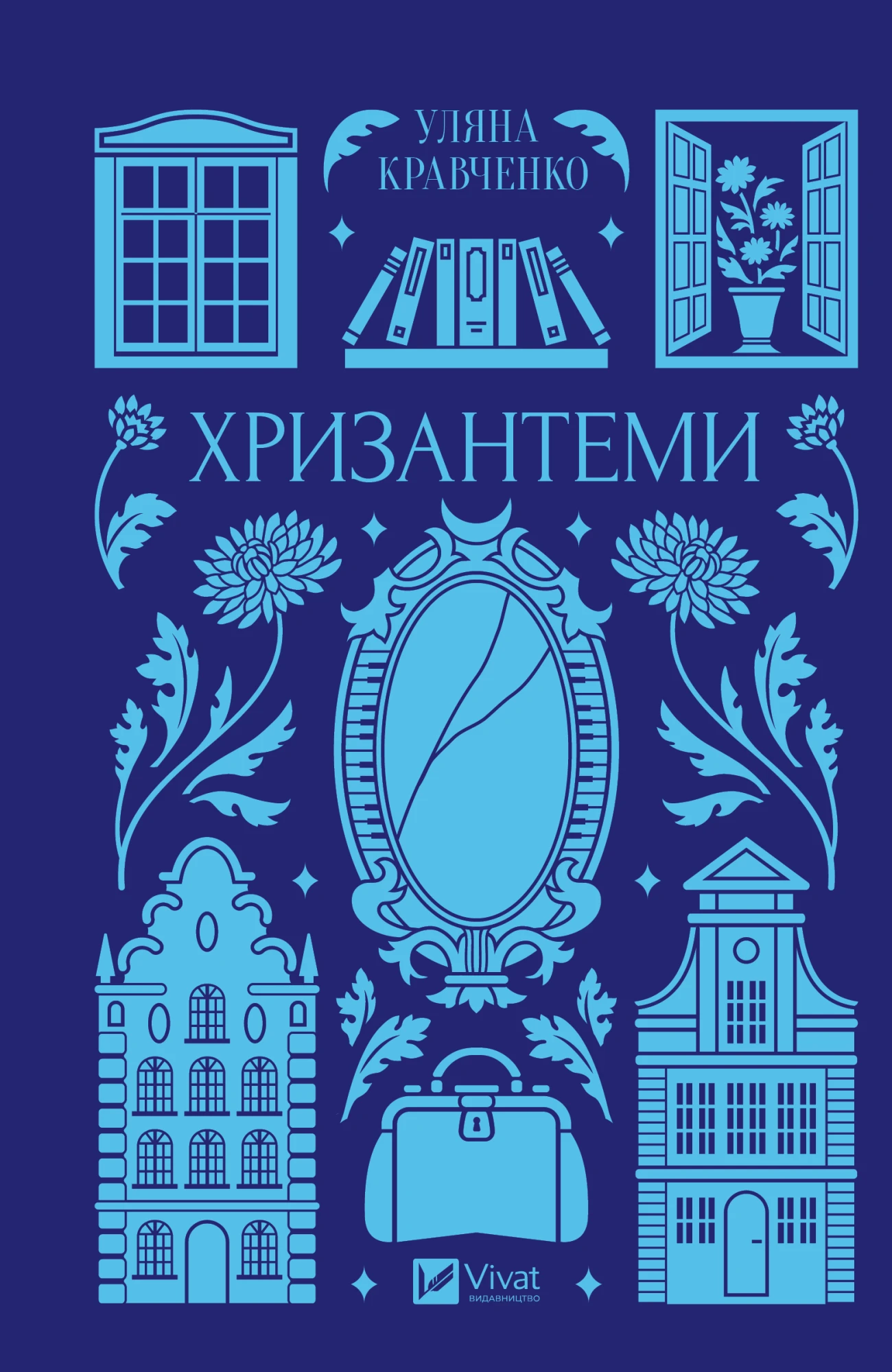 Автобіографічний роман «Хризантеми» змальовує контекст епохи, в якій формувалася письменниця — кінець XIX століття. Уляна Кравченко розказує про перші сімнадцять років свого життя, які провела в містечку на Львівщині. Вона звертається до своїх спогадів про дорослішання, описуючи столик із шухлядками й трохи запилене піаніно, які ніби застигли в літах, зображує побут галицької інтелігенції, розкриваючи парадокси власної особистості.