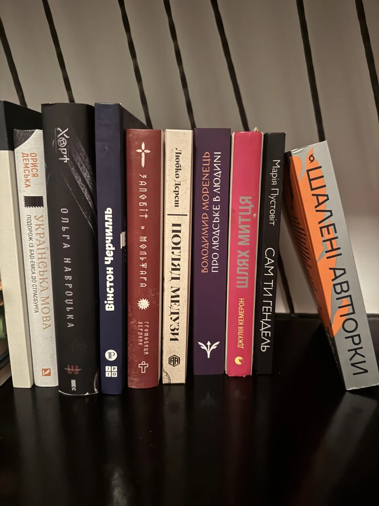 Останнім часом це улюблена художня література, яку я буду перечитувати, але такої не багато. Також книжки видавництва «Родовід» — цікаві дослідження та артбуки, наприклад, «Квіти і птахи в дизайні українських килимів» чи видання про вишивку й українську сорочку. Це просто must have — те, що вони видають можна купувати не розгортаючи.