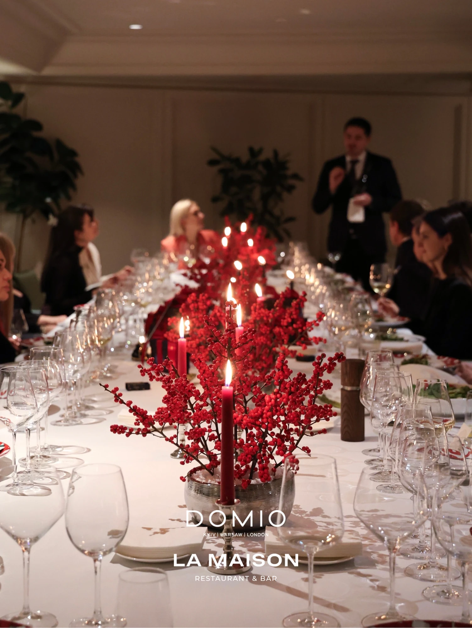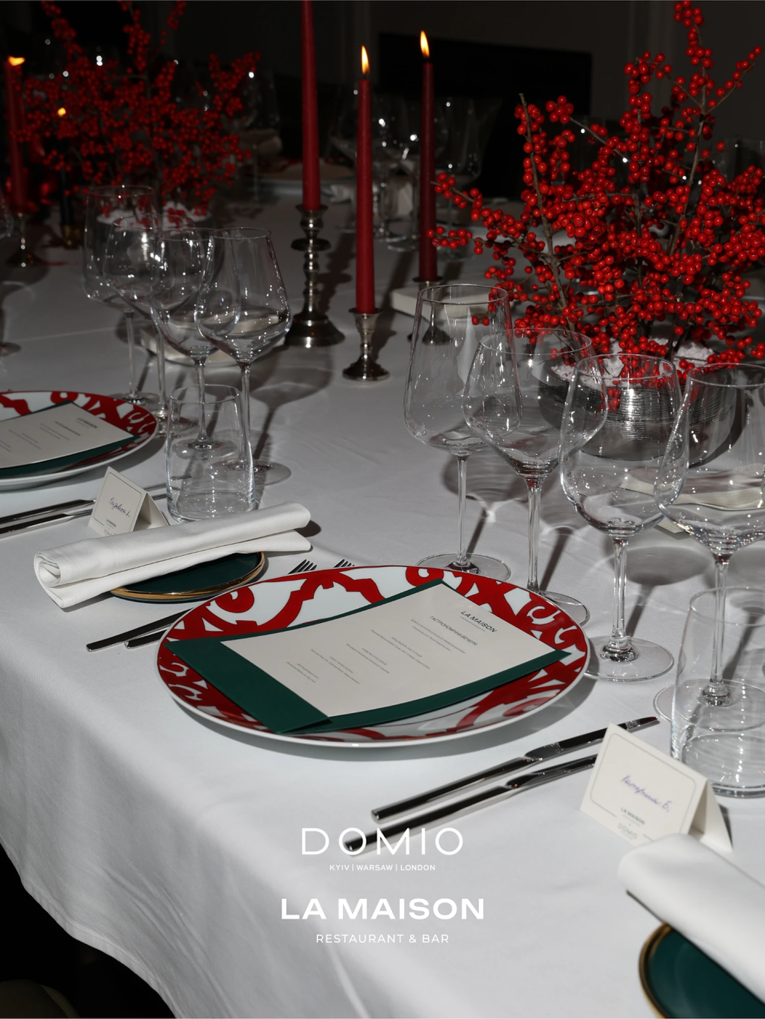 Domio спільно з La Famiglia влаштували камерну вечерю для близьких друзів і клієнтів бренду. Подія відбулася в La Maison — ресторані сучасної французької кухні, де гастрономія поєднується з панорамними вікнами, м’яким світлом і витонченим неокласичним інтер’єром. Простір став ідеальним тлом для цієї зустрічі — втіленням сучасного паризького шику в самому серці мегаполіса.