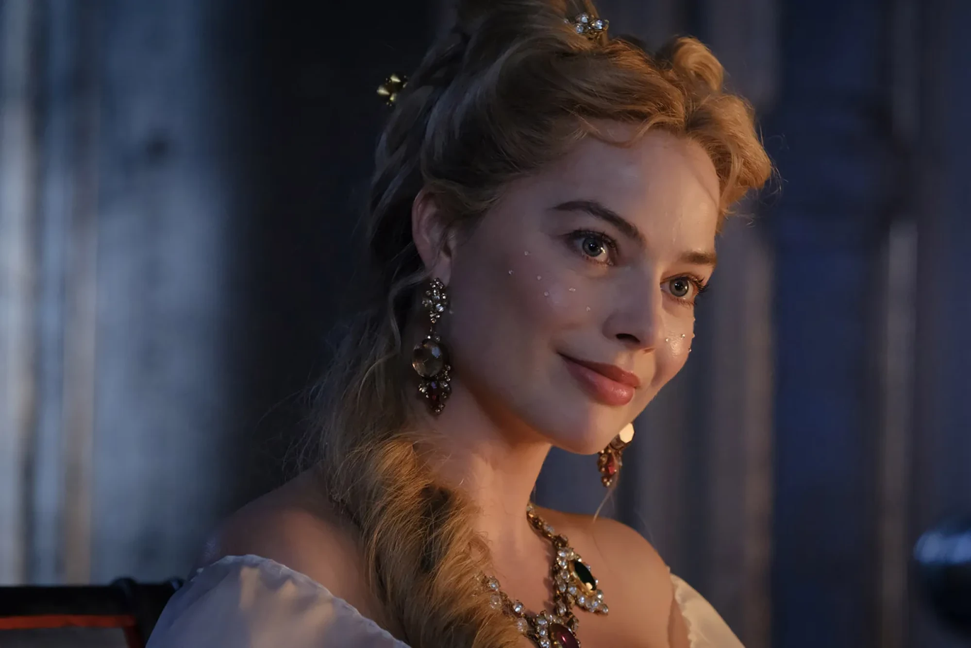 Прикраси Chanel можна помітити й у волоссі акторки — художниця з гриму та зачісок Сіан Міллер створила для Роббі понад 46 різних образів. При цьому стрічки, озздоблення з перлів і живих квітів та кришталеві елементи команда виготовила вручну.