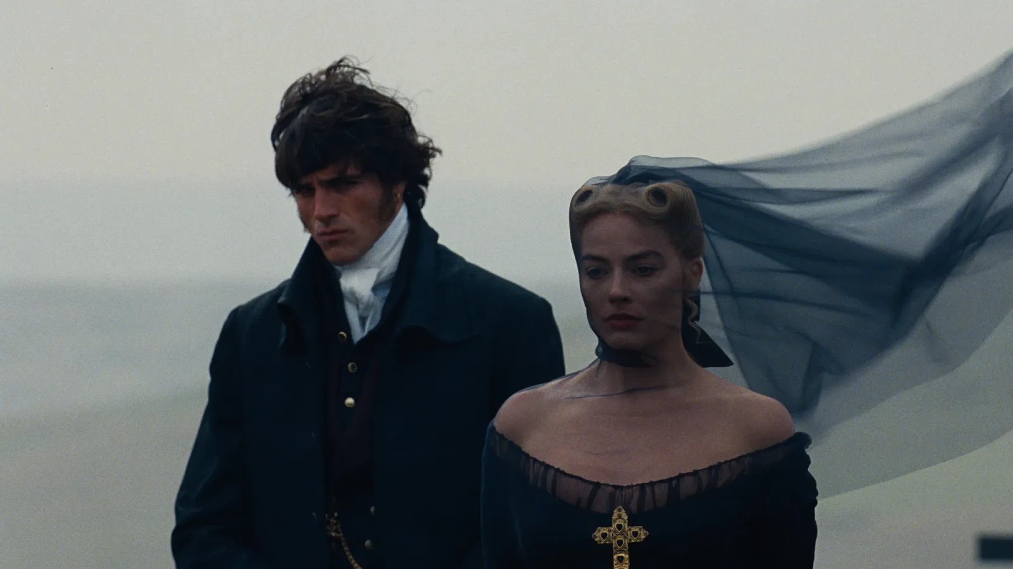 Гардероб Гіткліфа також розповідає власну історію — він тяжіє до естетики 1800-х, героя георгіанської епохи. Спочатку його образи стримані й практичні, але після повернення до Буремного перевалу вже заможним чоловіком він переходить до повністю чорного ансамблю, що наголошує на зміні його статусу й характеру. Білі сорочки і драматичне чорне пальто, у яких ми бачимо Джейкоба Елорді, нагадує про амплуа байронічного героя: самотнього, розчарованого у житті бунтаря.