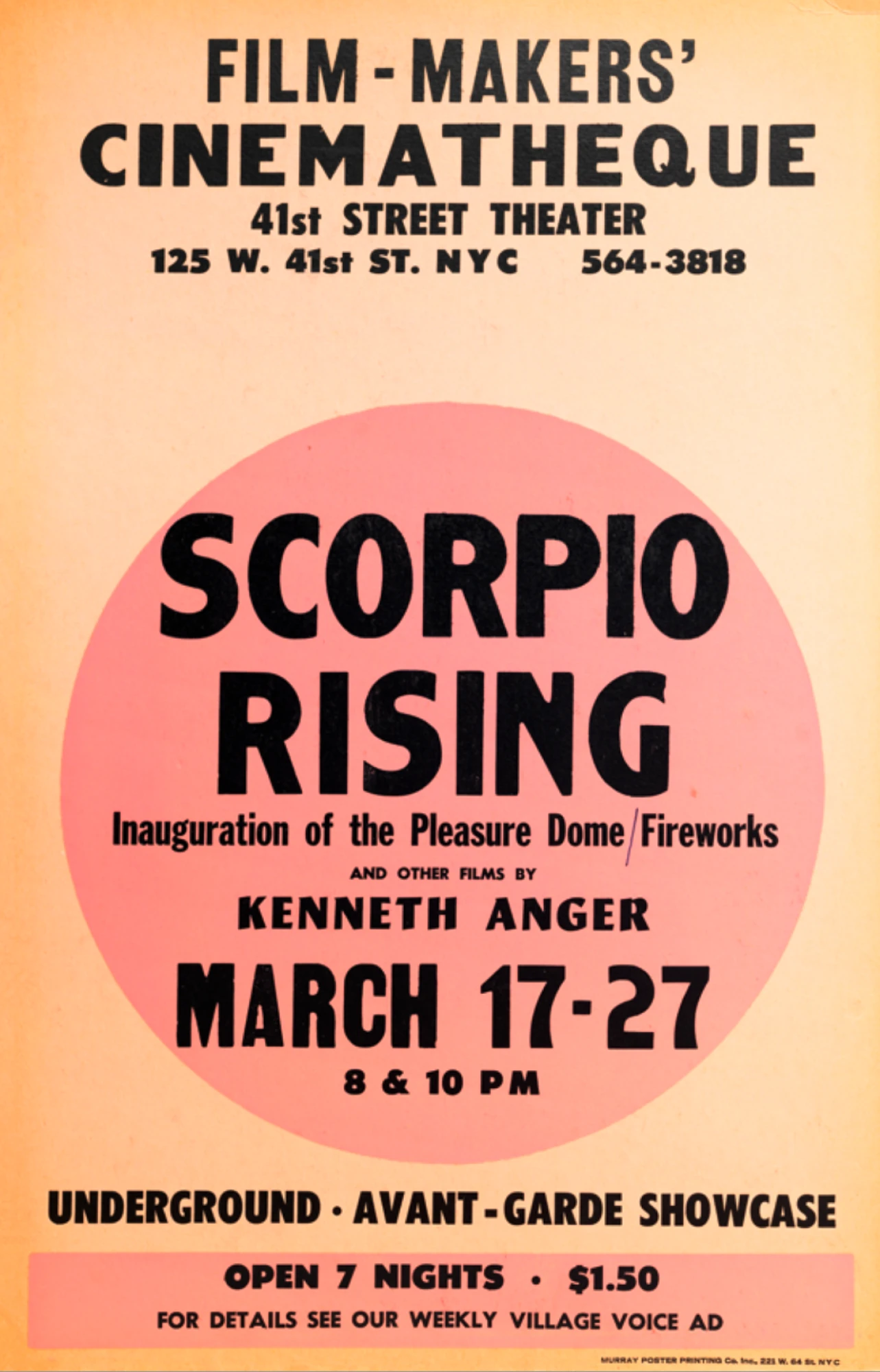 Афіша до шоу Scorpio Rising американського режисера Кеннета Енґера в Сінематеці Кооперативу режисерів, 1965