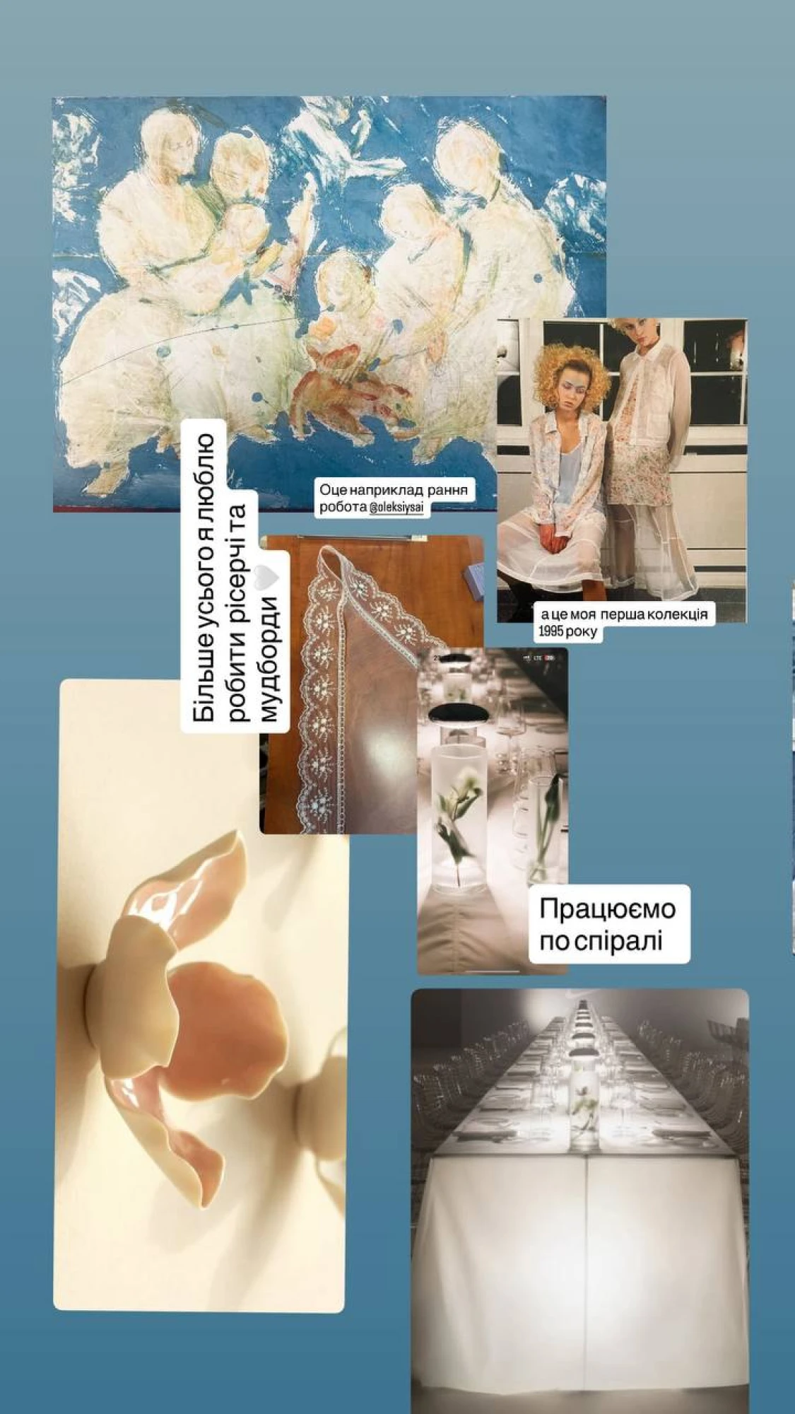 В мене за час підготовки колекції звісно багато витоків натхнення, і вони зміщуються в моїй свідомості в щось, що потім відтворюється в колекції.