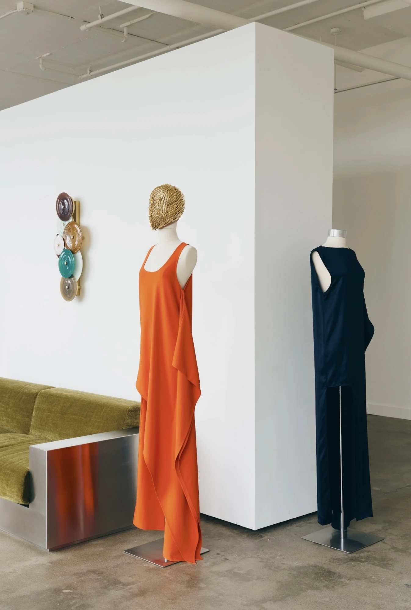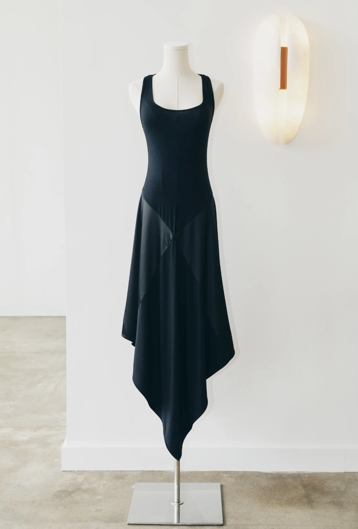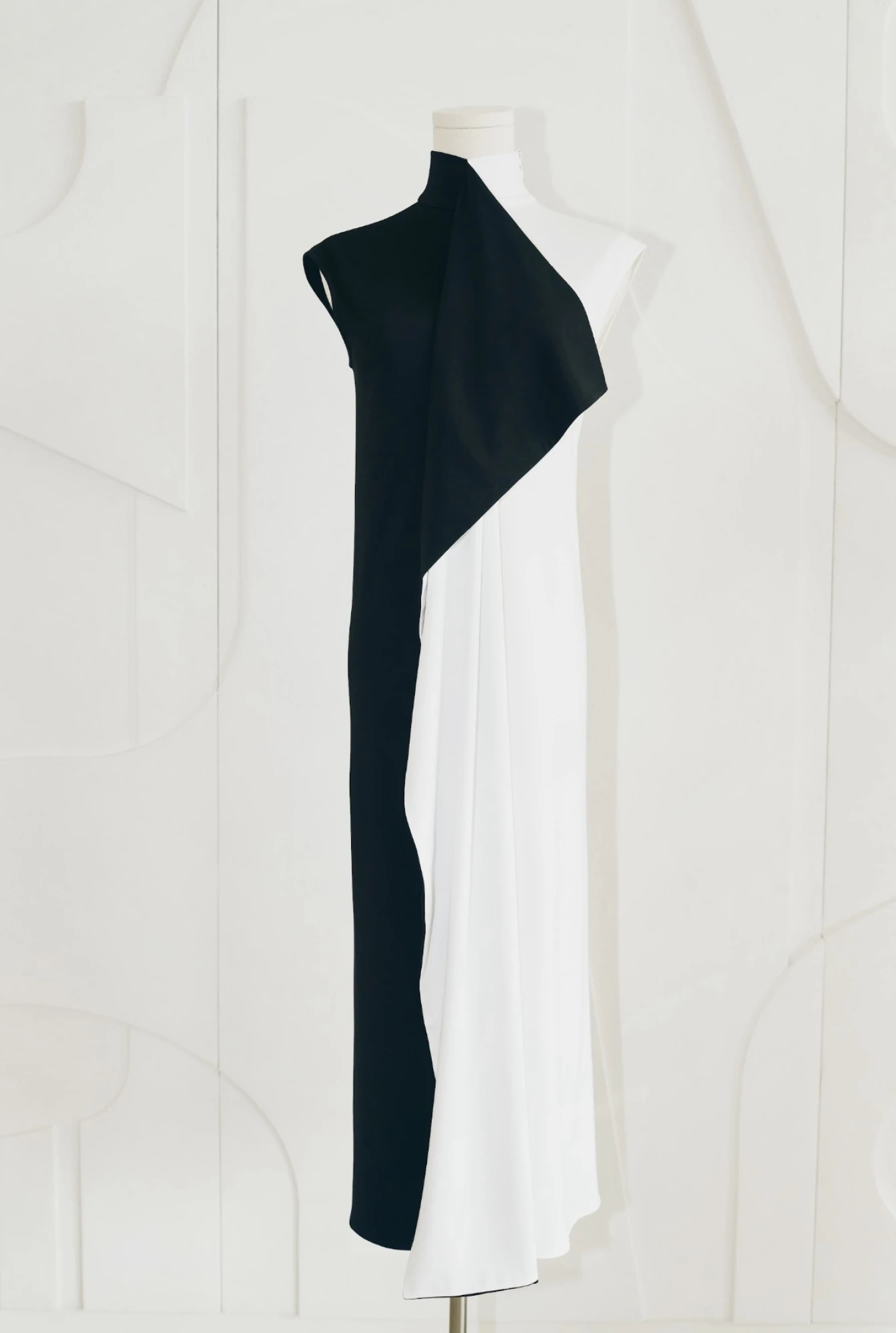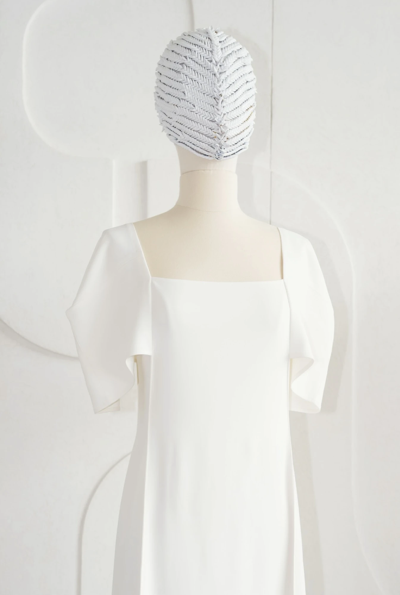 Ще один знаковий предмет у колекції — сукня, скроєна з одного квадрата, що зберігає акцент на чисті лінії та геометрію.