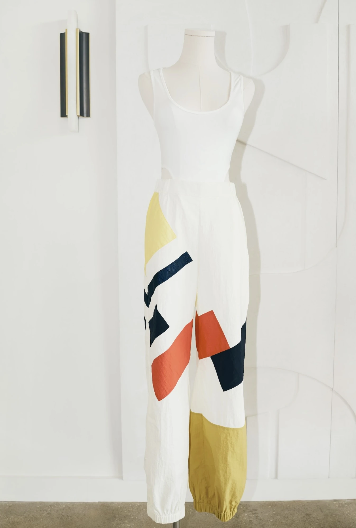 Один із ключових виробів колекції — штани «Малевич». Вони частково пошиті з вінтажних тканин, зібраних в Україні у 2025 році. Ця річ не лише має цікавий вигляд, а й підтримує курс BEVZA на сталість і відповідальність.