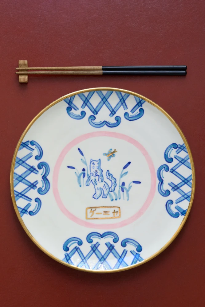 Колаборація GUNIA х «Привіт» — це поєднання української традиції наївного мистецтва та азійських мотивів. До лімітованої колекції увійшли 5 керамічних виробів: тарілки, маслянка і соусник. Усі вони виготовлені та розписані вручну, а окремі елементи прикрашені позолотою.