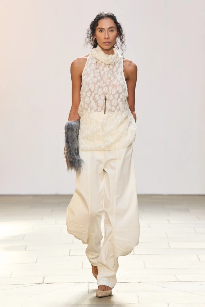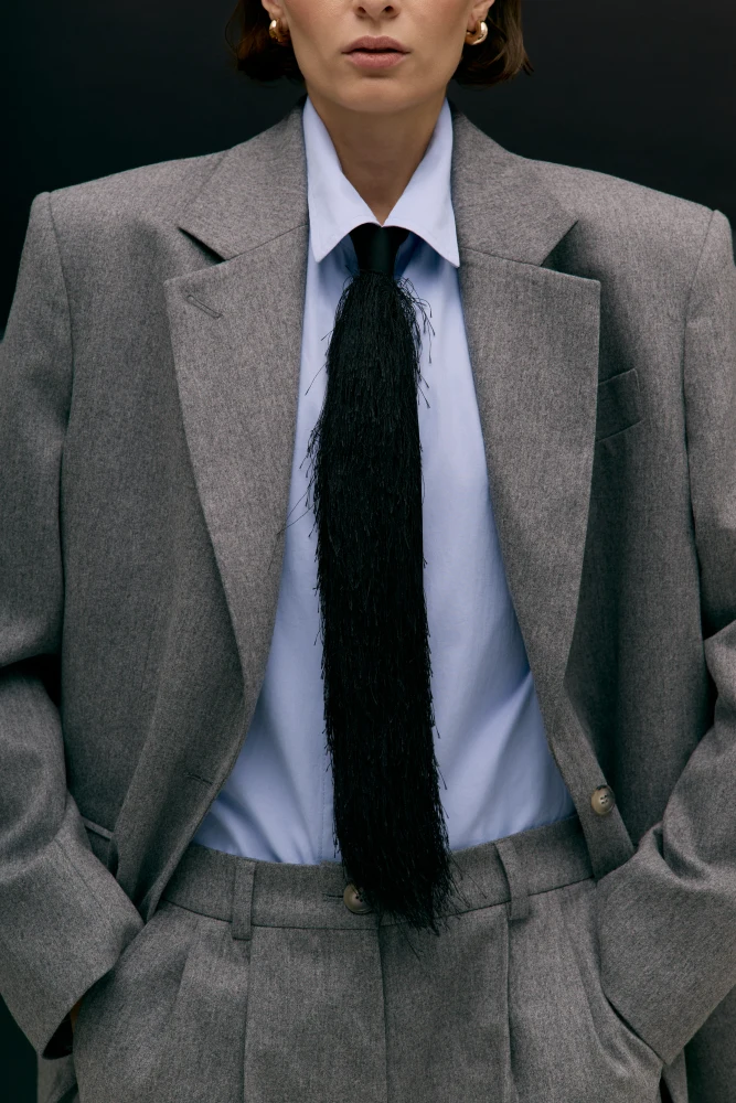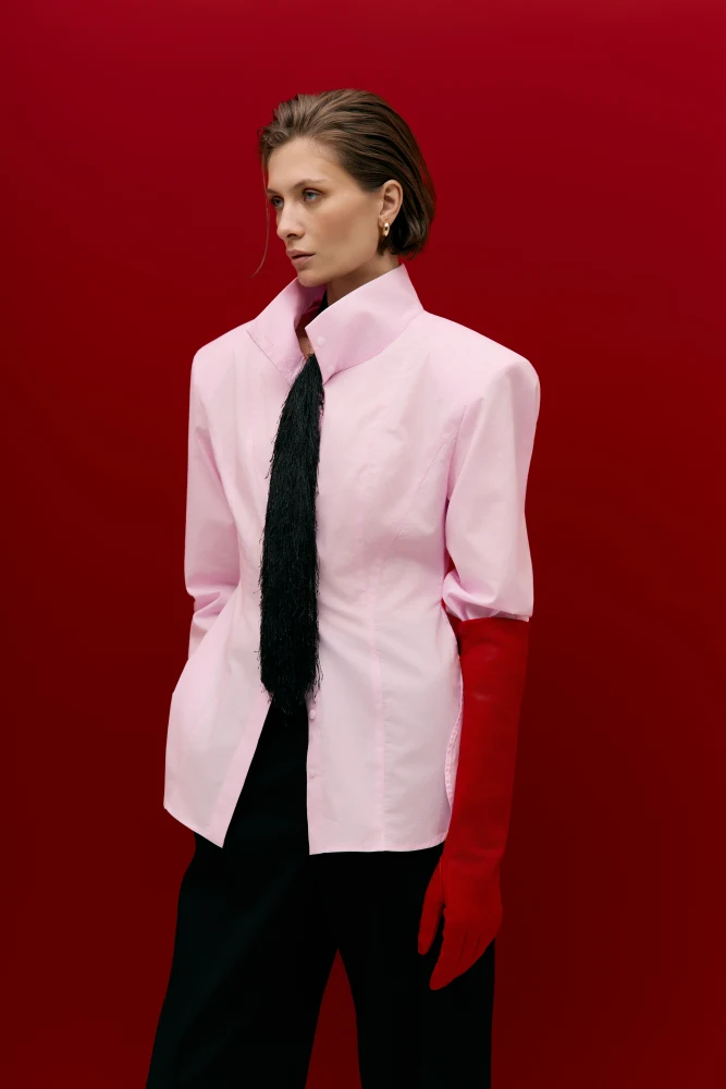 У центрі візуальної мови колекції — рішучість і сила, а серед ключових її елементів — фартух. Він повторюється у колекції, переосмислюючи традиційне позиціонування жіночого тіла.
