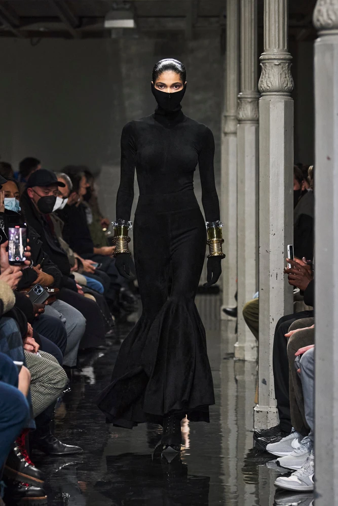 В Alaïa Мюльє відзначився особливою майстерністю у роботі з формами та лініями. Він сміливо працював зі скульптурністю і драпіруванням, вирізамийі бахромою. Одяг немов народжувався у взаємодії з тілом. І хоча Пітер не цитував архіви Дому прямо, відлуння творчості Аззедіна Алаї ми відчували в кожній колекції.