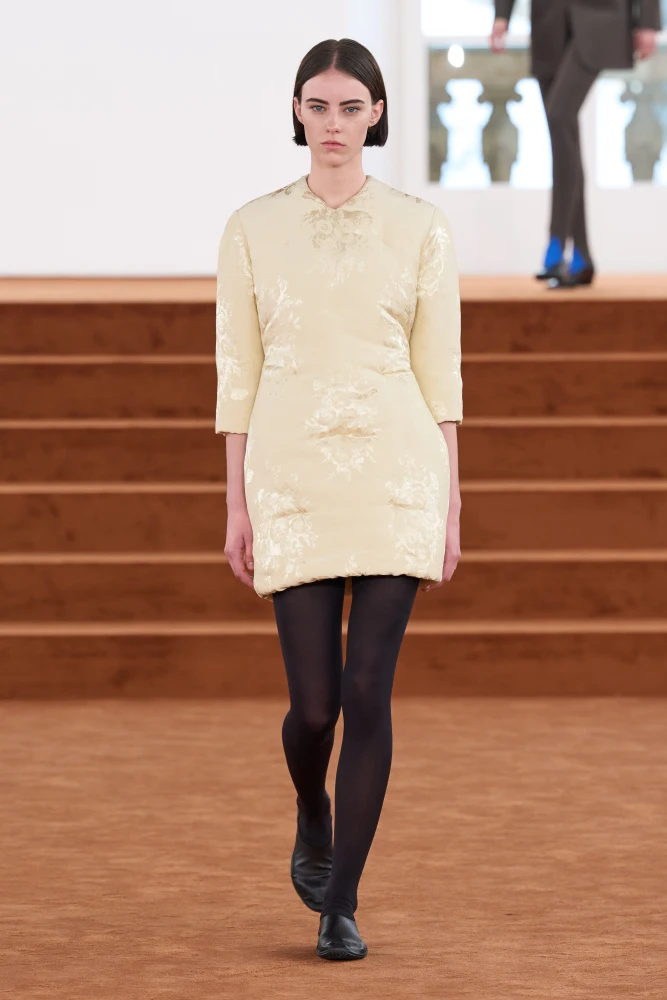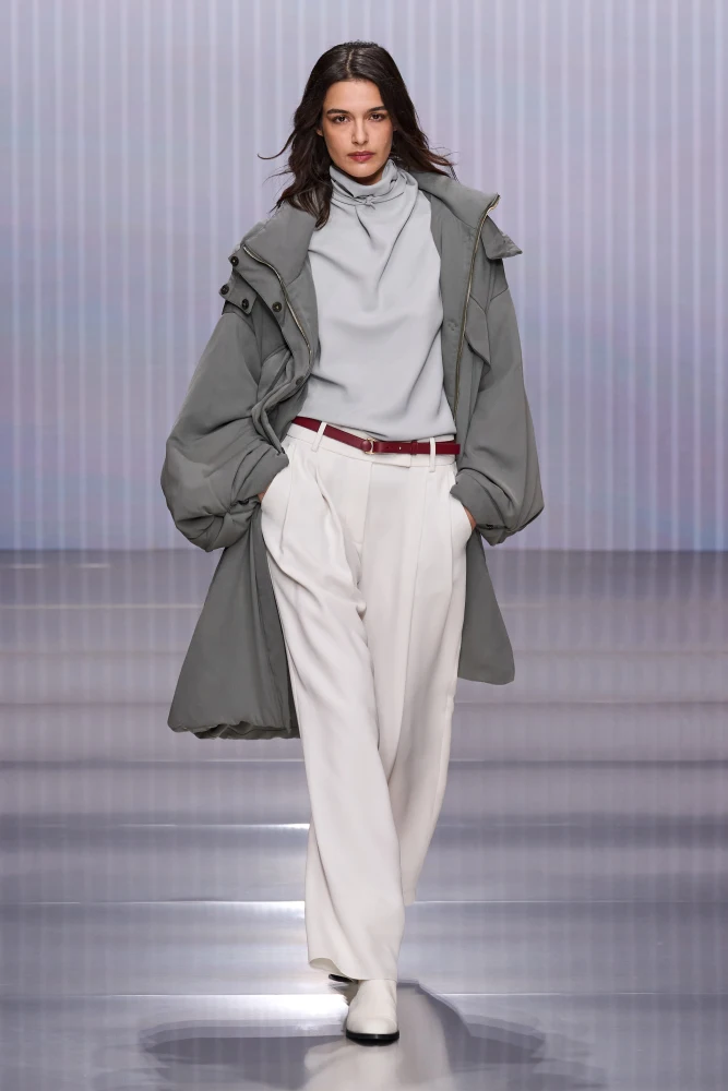 Сама колекція Луїз Троттер для Bottega Veneta сезону осінь-зима — 2026/27 оспівує Мілан у всій його красі: сувору геометрію вулиць та інтимні дворики поблизу Piazza del Liberty, брутальність будинків та їхні романтичні інтер’єри, стриману робочу уніформу та гедонізм, що схований за нею.
