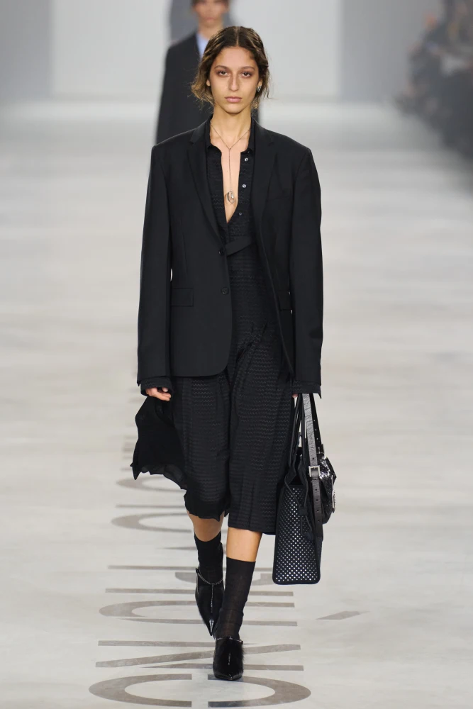 Окрім цього, MM6 Maison Margiela вплітає у лінійку й елементи офісної естетики, зокрема, через спідниці-олівці, що додають колекції зібраності та структури. Родзинкою показу стали окуляри, що ховали особистості моделей, наголошуючи на одному з центральних кодів бренду — анонімності.