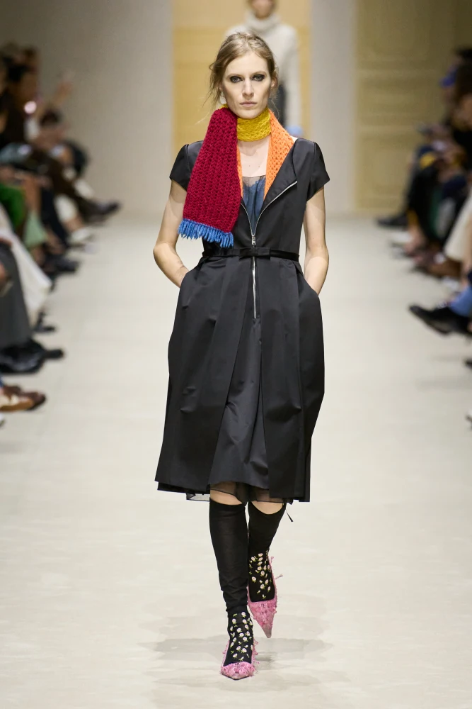 Ще одна дебютантка Міланського тижня моди сезону осінь-зима 2026/27 — Меріл Рогге представила свою першу колекцію Marni. Дизайнерка пропонує свіжий погляд на ідентичність бренду. Вона повертається до його витоків і початкових сенсів та водночас віднаходить нове у візуальній мові Marni: контрасти, пропорції, принти.