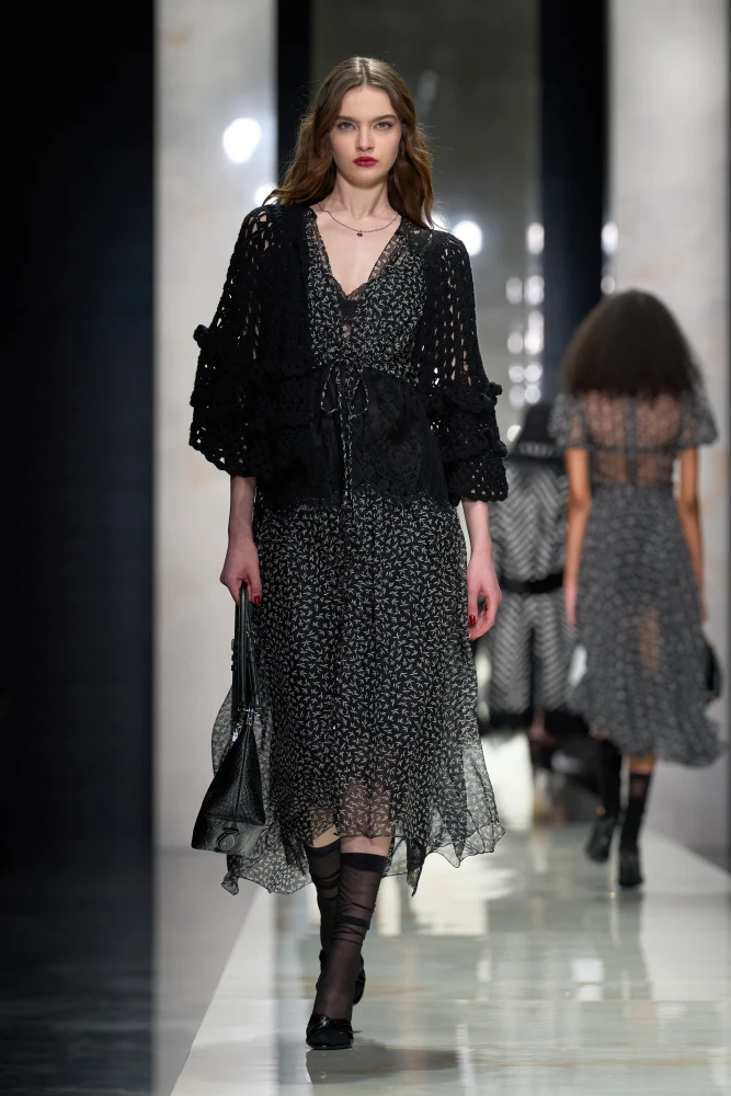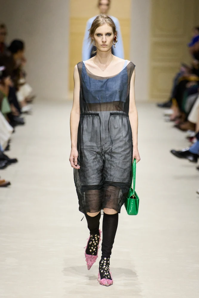 З-поміж не дебютних, проте довгоочікуваних шоу варто відзначити Bottega Veneta і другу колекцію Луїз Троттер для цього бренду. У ній дизайнерка продовжує розвивати унікальний діалог фактур і крафту, витонченості й оптичних ілюзій.