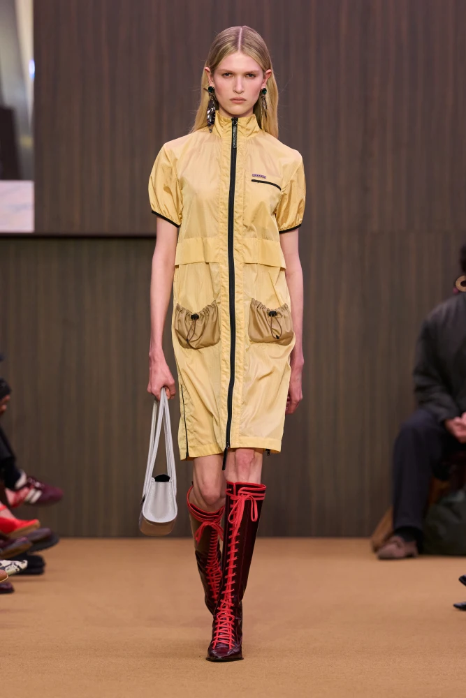 Із сезону в сезон Prada традиційно залишається найбільш обговорюваним брендом Тижня моди в Мілані. Показ осінь-зима — 2026/27 не став винятком: Міучча Прада і Раф Сімонс вивели на подіум усього 15 моделей, кожна з яких дефілювала чотири рази. З кожним виходом моделі змінювали стилізацію своїх образів, знімаючи й додаючи шари одягу.
