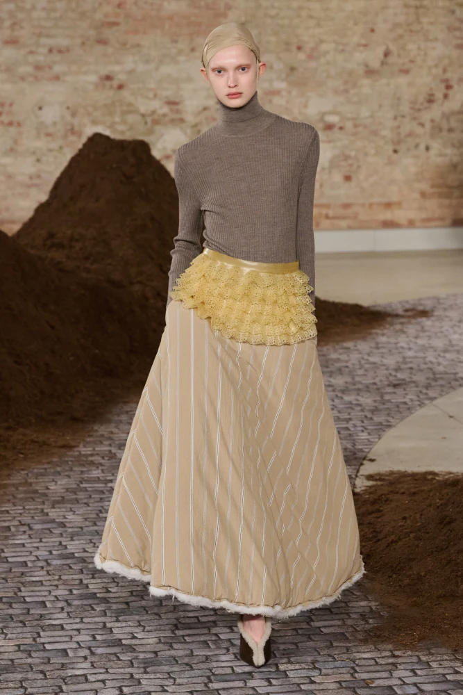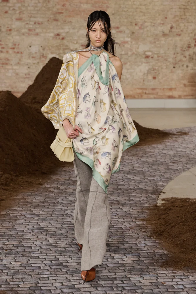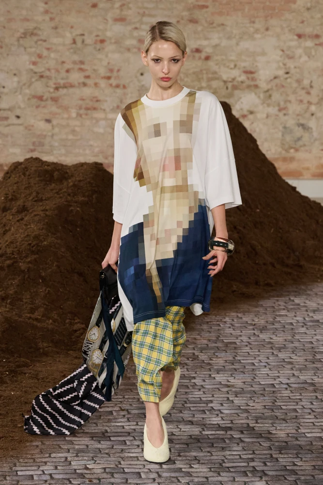 Окрім цього, для свого дебютного показу Marni Рогге співпрацювала з Formafantasma над створенням декору, що відображає, як мода діє в повсякденному житті та як формат подіуму одночасно обрамляє та переосмислює цю реальність.