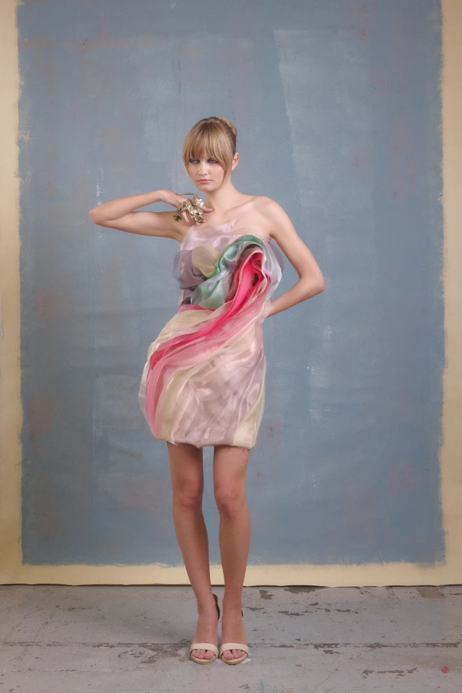Стиль культових полотен, їхні насичені кольори та гедоністичне спрямування Мартенс втілює через зім’яті фактури трикотажу, деніму та оксамиту, виразні квіткові аплікації, хутро з яскравими жовтими, помаранчевими й блакитними вкрапленнями, а також деконструкцію одягу.