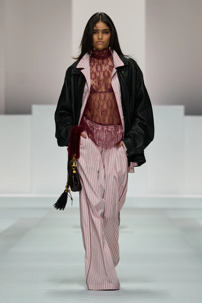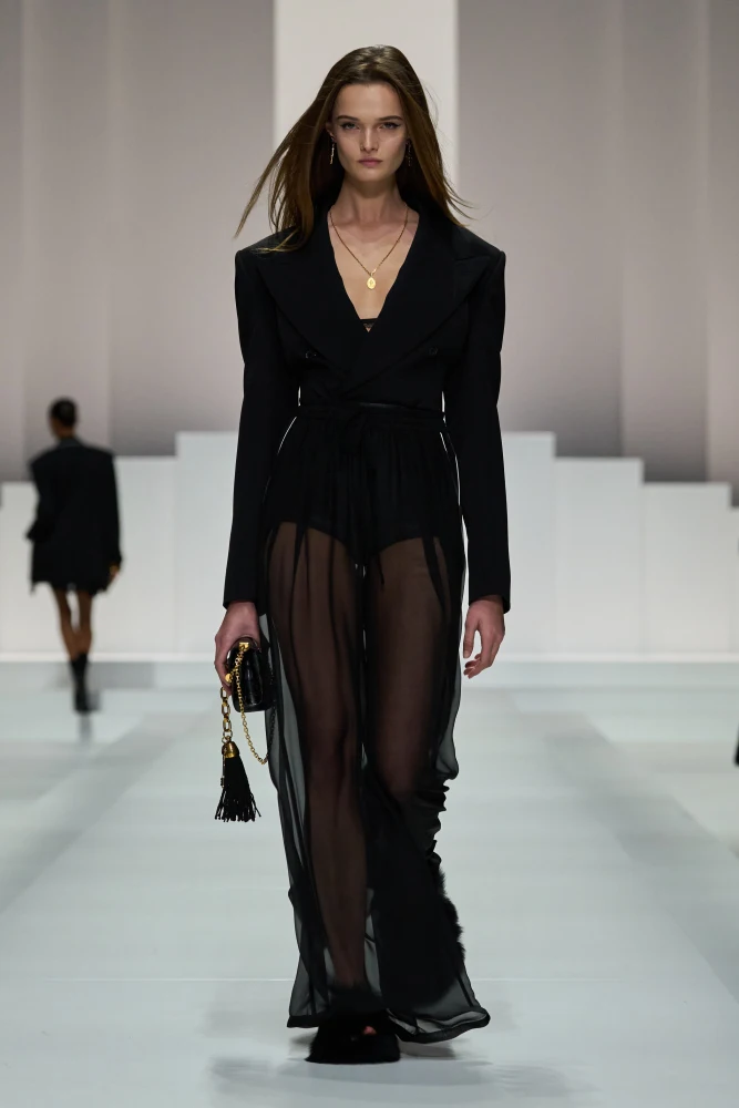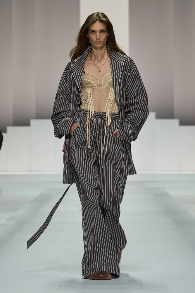 Хоча Міранда Прістлі у front row стала чи не найбільшою сенсацією показу Dolce&Gabbana, сама колекція також варта уваги. У ній Доменіко Дольче та Стефано Габбана підносять білизняний стиль на небачений раніше рівень. Вони пропонують піжами, сукні сліп, прозорі пеньюари, корсети й мереживні бра як універсальний елемент гардероба, що працює у парі з денімом, структурованим жакетом, об’ємною шубою і тренчем.