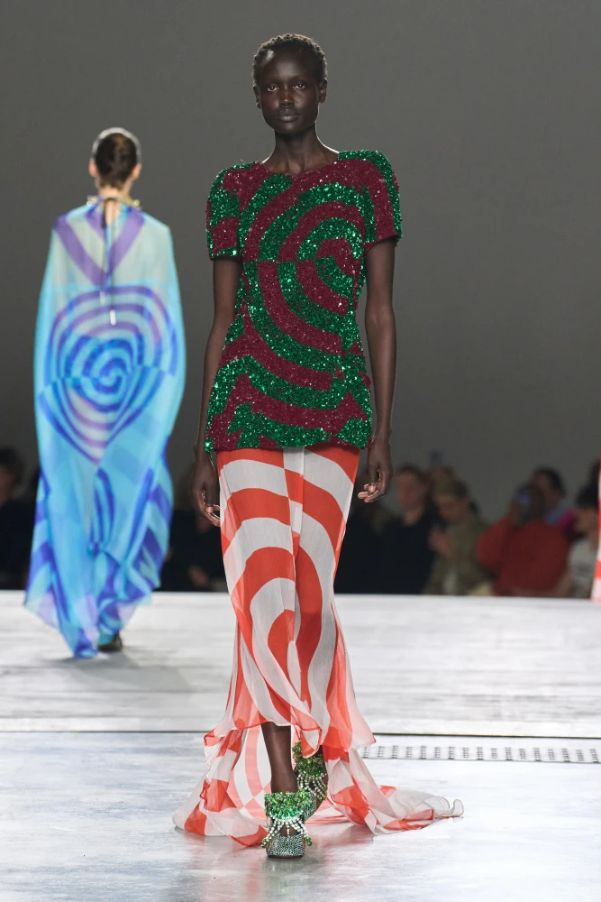 Ще один гучний паризький дебют — показ Джекa МакКаллоу та Лазаро Ернандеса, засновників Proenza Schouler, для Loewe. Обійняти посаду очільників бренду після Джонатана Андерсона — завдання не з простих, проте дизайнери все ж змогли розробити і представити власне бачення: яскраве, скульптурне і грайливе.