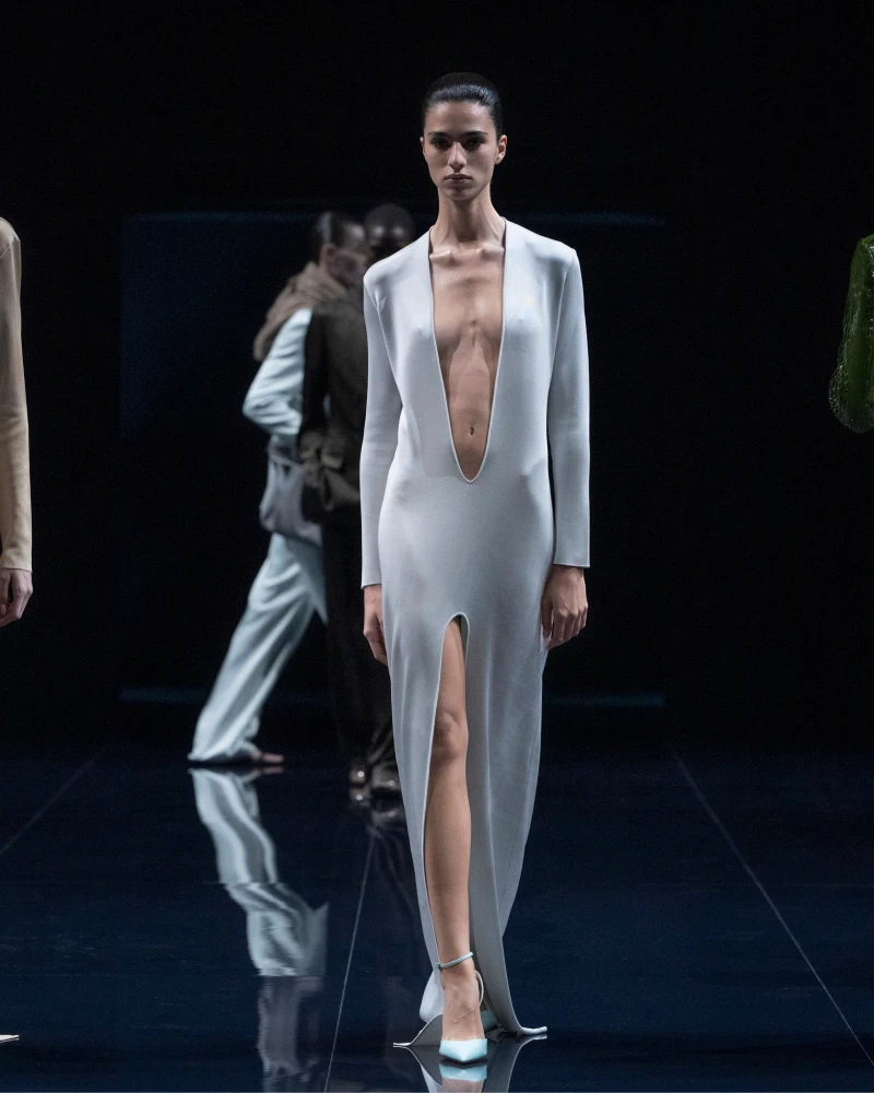 Дух бренду Tom Ford — це бажання, що немов п’янкий аромат просочує його. Саме з цього бажання й зіткана колекція весна-літо — 2026: крокуючи подіумом, моделі фліртували один з одним, зваблювали публіку. Настрій, що його сам Гайдер Акерманн описав як «опівнічне купання в океані», підкреслювали вертикальні силуети, жести.
