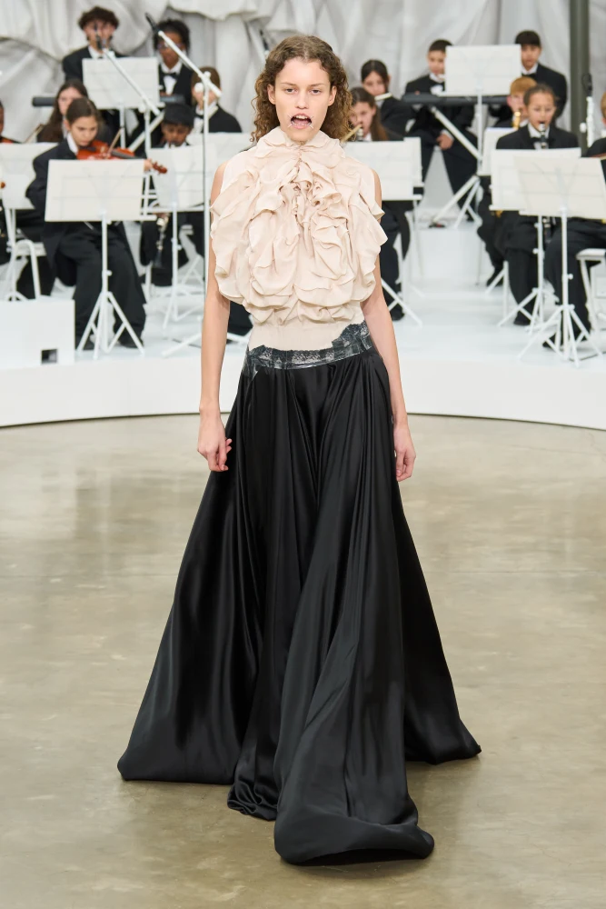 Гленн Мартенс представив свою першу жіночу колекцію для Maison Margiela, і зробив це під акомпонемент дитячого оркестру. Діти грали хаотично й безладно, однак це доповнювало загальну картину шоу. Іншим атрибутом, який активно обговорюють у Мережі, стали металеві скоби у роті моделей.