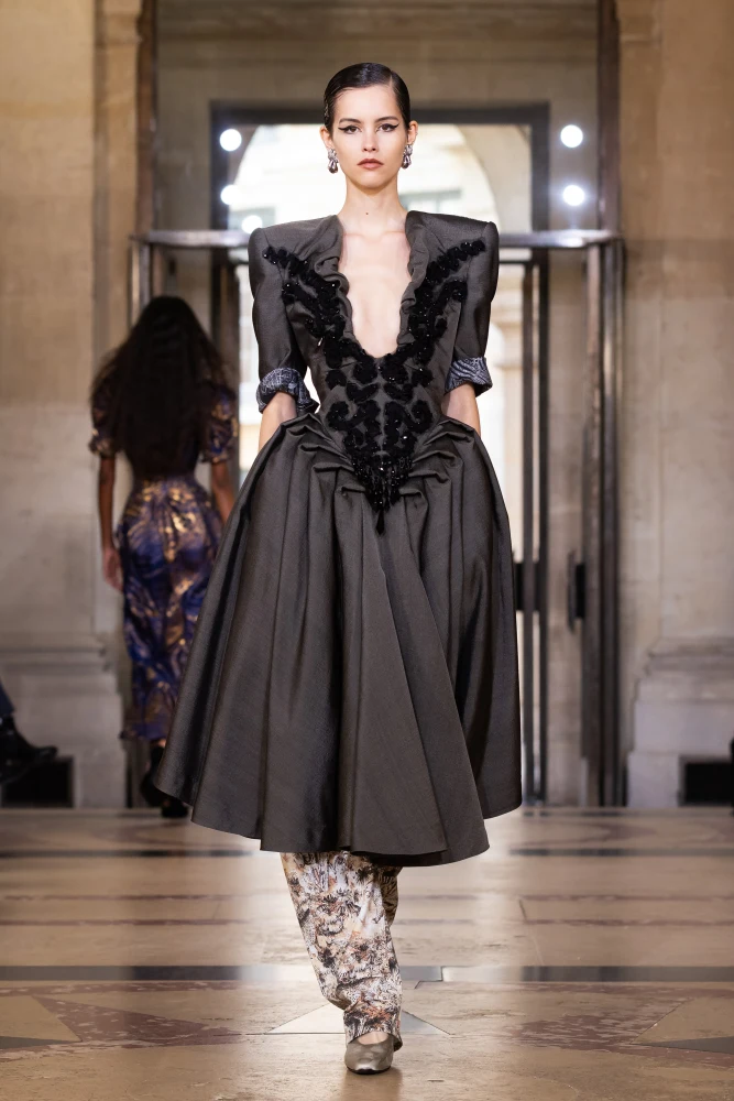 У підніжжі Ейфелевої вежі креативний директор Saint Laurent Ентоні Ваккарелло вкотре продемонстрував майстерне поєднання вишуканої спадщини Дому і сучасної елегантності. Зберігаючи чуттєвість і легкість виробів, дизайнер заглибився у дослідження форми й силуетів. Так, його лінійка стала новим маніфестом жіночої сили.