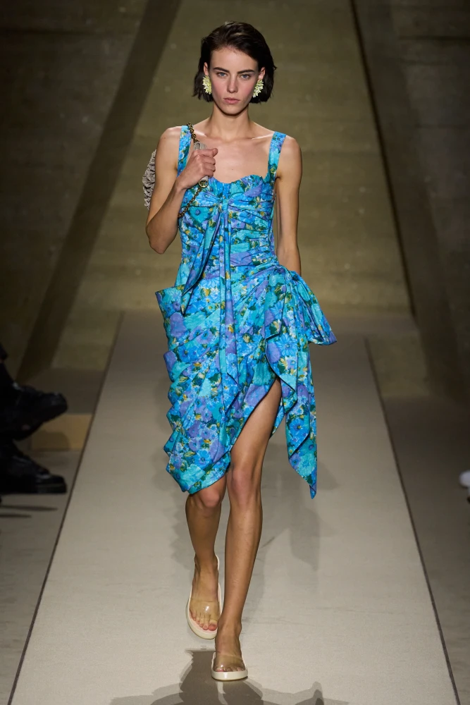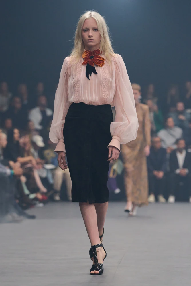 Жінка Chloé виходить за межі бохостилю — дизайнерка Чемена Камалі цього сезону переосмислює вінтажні квіткові принти 1950-60-х у вишуканих сукнях-бюстьє і драпірованих топах.