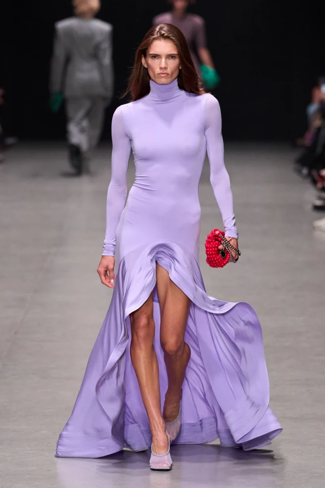 Окрім цього, червоний добре поєднується з фіолетовим у різноманітних його відтінках: від глибокого темного до лілового. Останній став основою для чималої кількості аутфітів на подіумах весна-літо — 2026.