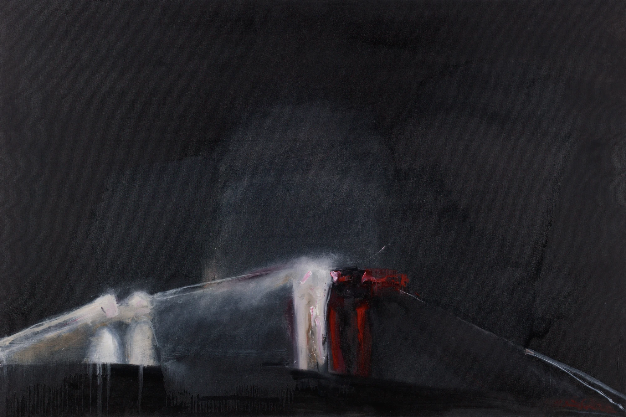 Відзначу ще одну важливу серію «Передчуття», написану за кілька тижнів до повномасштабного вторгнення, у яке я розумом не вірив, та коли дивлюся на ці картини, думаю: «Але рука ж «бачила». Це були звичайні пейзажі, які тим не менш сповнені тривоги. Вже далі серія «Дорожній щоденник», написана якраз у перші місяці великої війни. У Польщі друзі, побачивши мій стан, відвели мене у художній магазин, де я накупив усякого приладдя. Як і всі, я їхав на тиждень з малесенькою валізою. Та коли побачив сто аркушів купленого чорного паперу з жахом усвідомив, що поки я їх не вималюю, я не повернуся. Я вигадав для себе правило: малювати не більше одного листа на день. Тож ця серія – моя щоденна кардіограма «у вигнанні». Згодом вийшла книга з віршами Сергія Жадана та моїм щоденником – «Дорожній щоденник».
