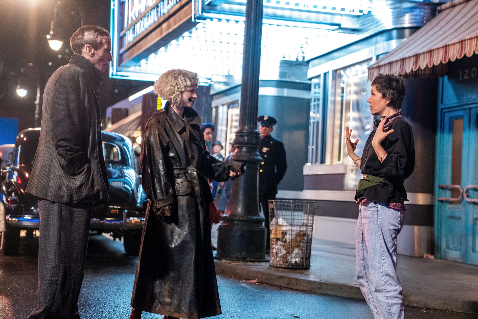 Грим також відображає момент народження персонажки. Коли тіло оживає під дією електрики, на її шкірі з’являються сліди, схожі на темні татуювання.