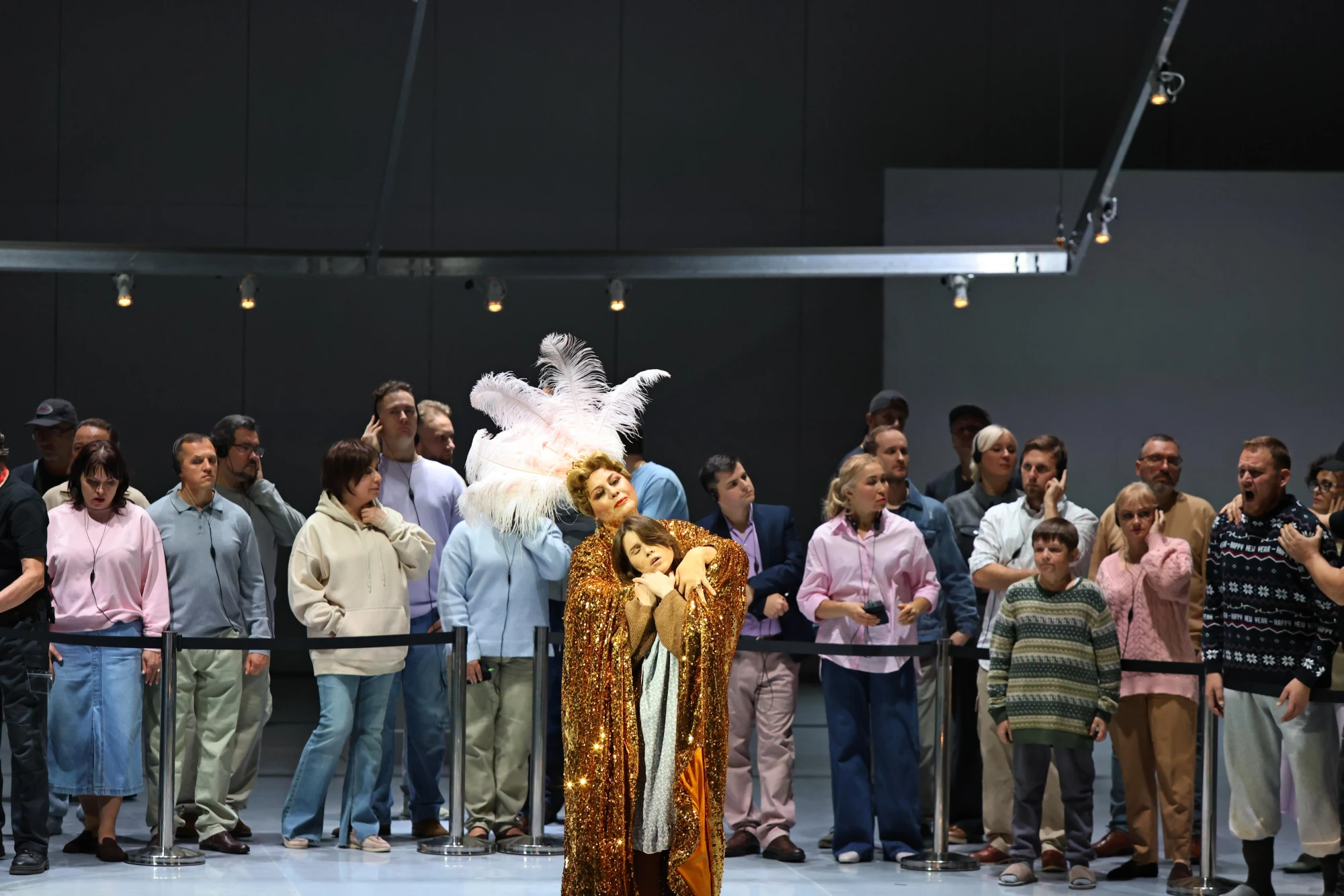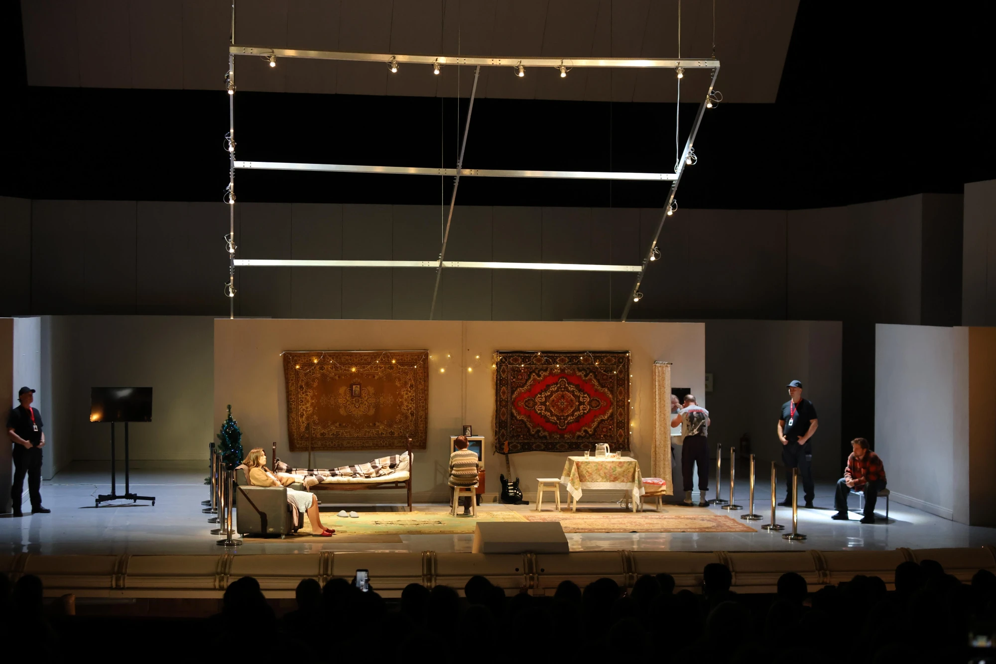 Насправді я вже чув достатньо критики через використання килимів у цій сцені. Хотілося, щоб Антонія сприймалася як материнський образ чи перша жінка в житті героя. У першій дії ми бачимо групу людей у розкішних речах та діамантах — вони символічно відкривають виставку. У третій дії я хотів на контрасті показати бідну сім'ю на межі виживання. Підкреслити, що Гофман у різні періоди свого шляху був на різних соціальних рівнях.