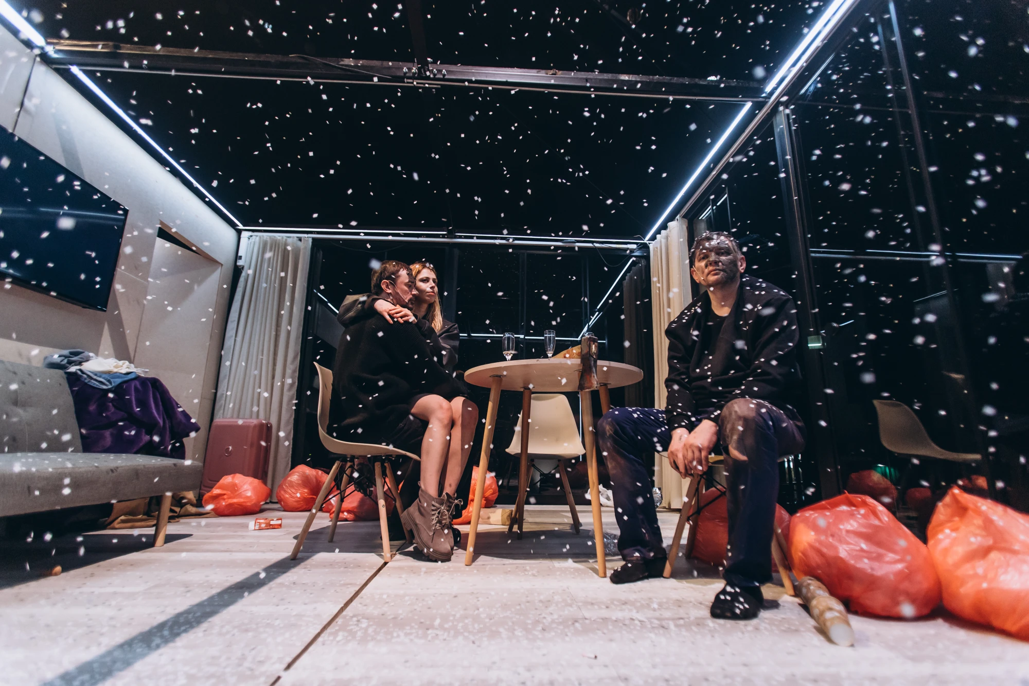 У постановці показаний конфлікт між нашим часом та іншим виміром. На основі твору Франка ми створили нову історію — тут ми буквально розкриваємо один текст через інший.