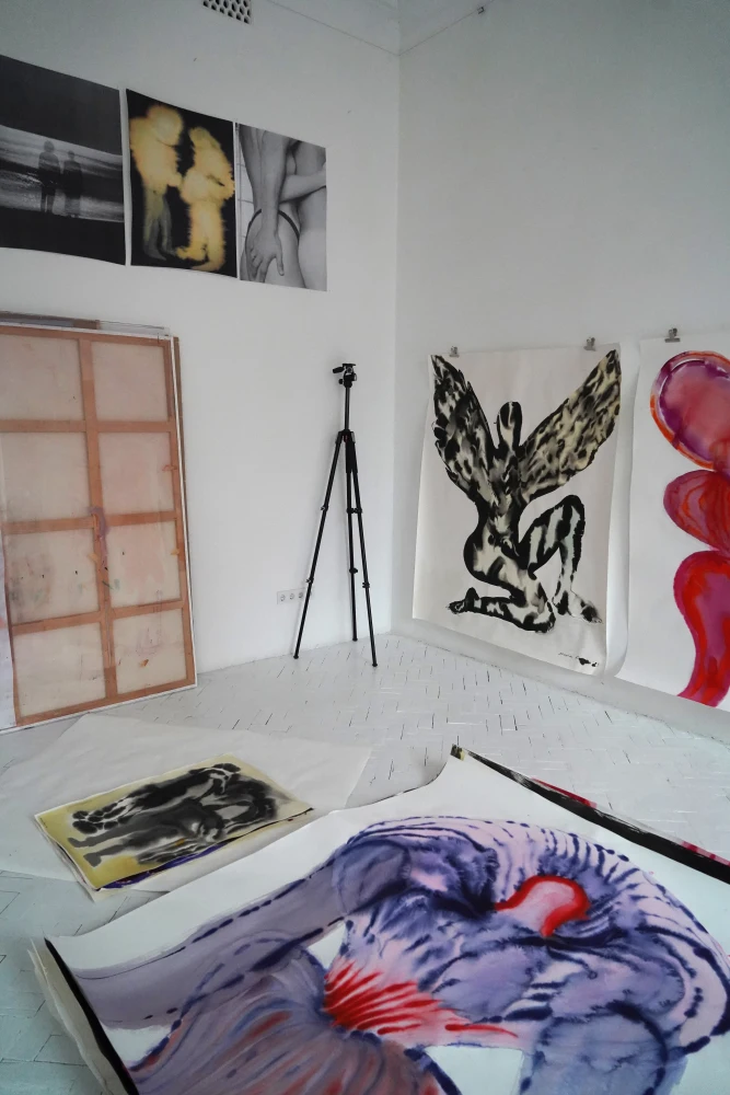 За своєю природою я дуже нетерпляча людина, мабуть, звідси й кількість напрямів моєї художньої практики. Мені здається, вони розвивають мене з різних сторін і підсилюють одна одну, а, може, мені просто швидко стає нудно і фокус перестрибує на нову «гру». Робота з тілом моделей трапилася в момент, коли я втомилася від навчання на дизайнерку одягу, якому присвятила 10 років. Це був такий власний бунт — знайти щось між одягом, тілом і малюнком. Можна навіть сказати, що я підсвідомо пішла у цей досвід, щоб вийти з одиночного руху і стикнутися зі світом інших у дуже інтимному акті, адже первинно я намагалася малювати «портрети» людей на їхніх тілах. Спостерігаючи за відкритістю інших до експерименту, я і сама ставала більш розкутою.