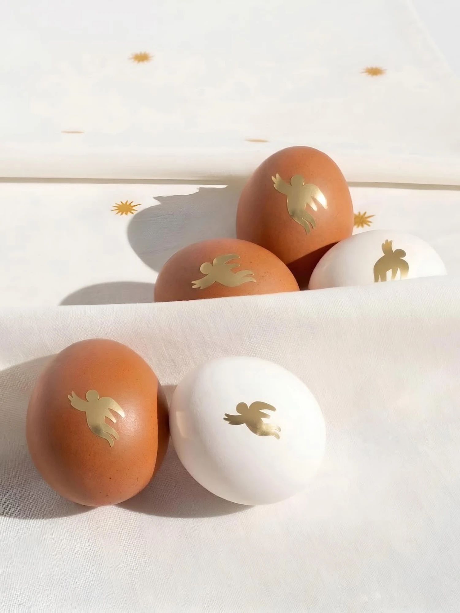Команда Hey Guide пропонує прикрасити свої крашанки наліпками у вигляді восьмикутних зірок, що натхненні символом світла, відновлення та нового початку, а також золотих янголів, які уособлюють благу звістку, надію та захист. Крім того, команда представила серветки «Золотий ангелик» та «Золотаве сузір’я» і набір різнокольорових великодніх свічок із натурального бджолиного воску.