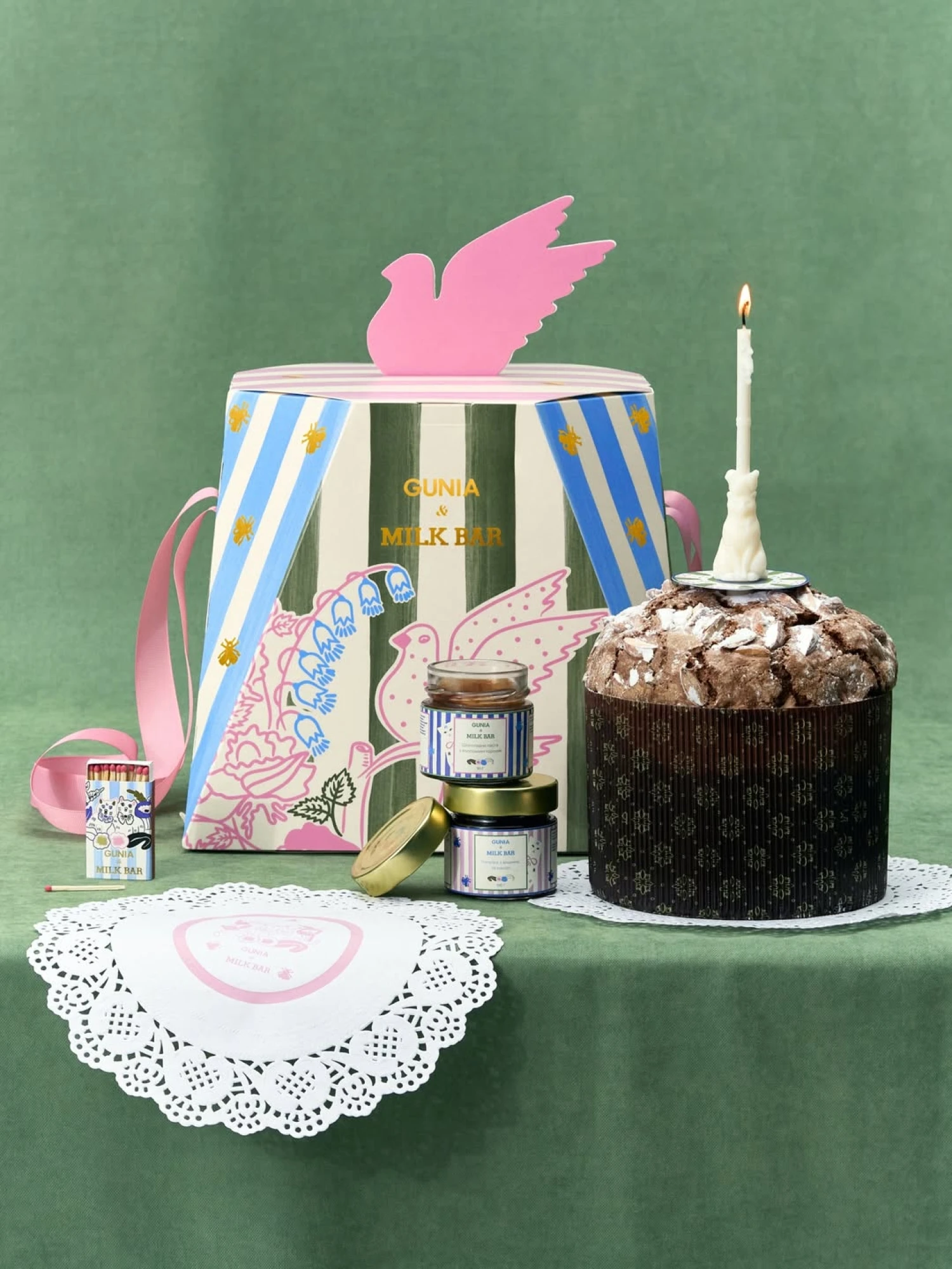 Бренд Gunia об'єднався з командою Milk Bar для створення «Великоднього набору», до якого увійшли паска з вишнею, маком та в’яленою грушею; намазка з вишнею та маком і шоколадна паста з волоським горіхом; наліпки для яєць, свічка з натурального воску, сірники та серветки. Доповнюють його два види святкових пряників із розписами, натхненними українським наївом. «Ми створили цей дроп, щоб давній великодній ритуал легко відтворювався у сучасному ритмі життя — швидкому, але все ще чутливому до деталей, естетики та змісту», — зазначають у бренді.