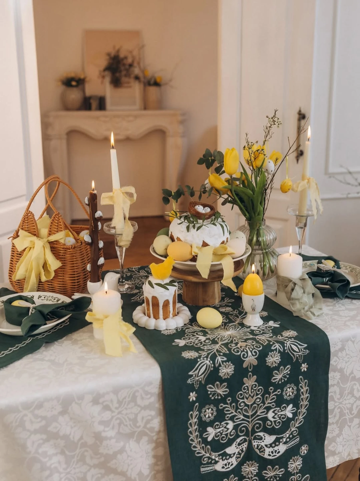 Бренд EmbroideredGem випустив колекцію текстилю з натурального льону: ранери та серветки синього, зеленого, жовтого та молочного кольору, оздоблені вишивкою з птахами, що є символом весни, добра і радісних новин. При цьому колір оздоблення можна обрати самостійно.