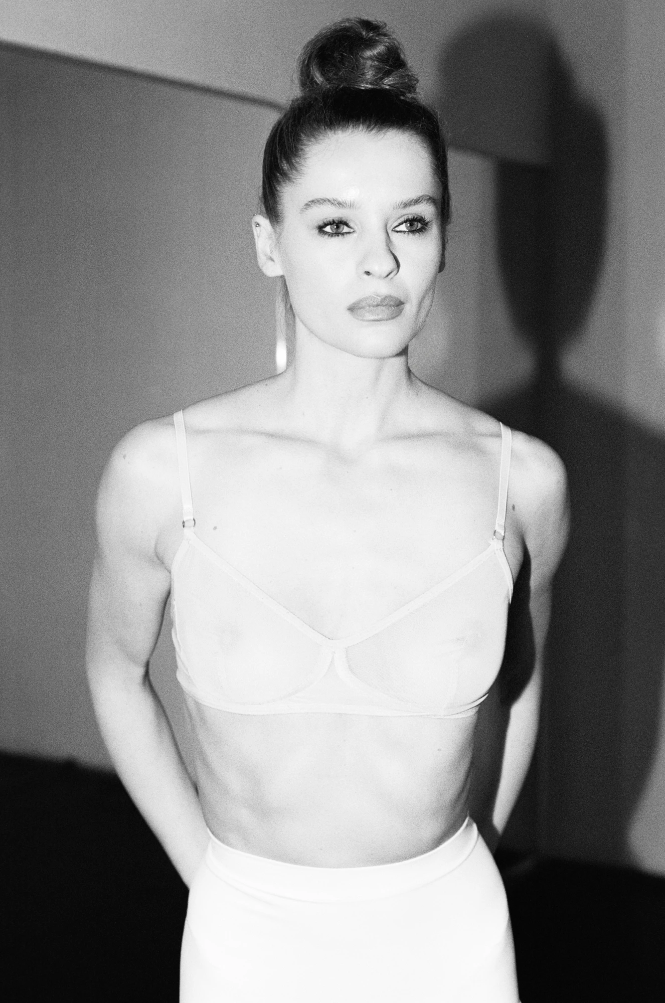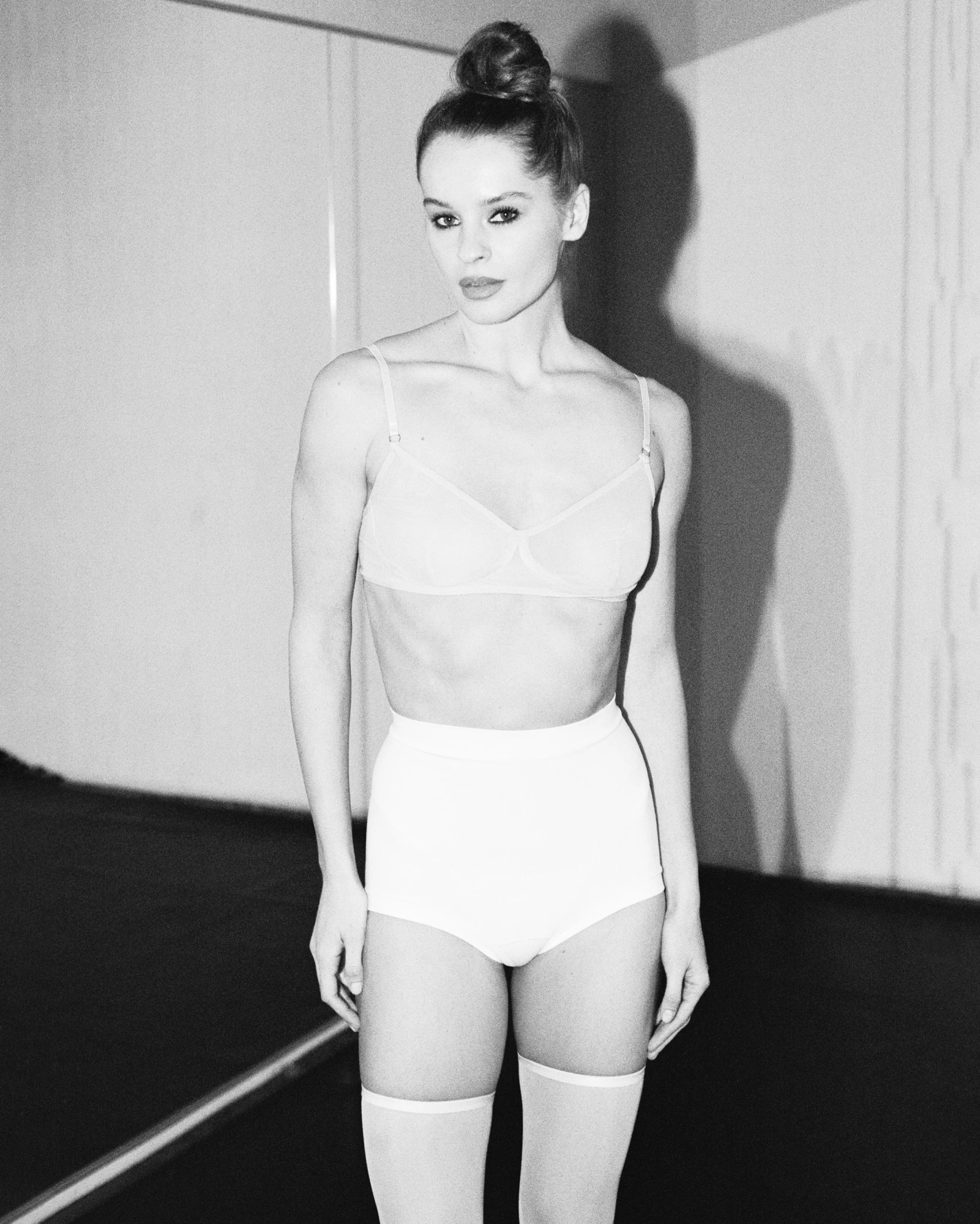 Серед найпримітніших аутфітів — білизняні комбінації, у яких мереживо символізує романтичність і ніжність, а прозора сітка додає зухвалості. Акцентами на тлі білизни виступають масивні сережки й сяйливі браслети. Знімальна команда звертається й до контрасту фактур у спідній білизні, поєднуючи бра з дрібної сіточки та бавовняний низ.