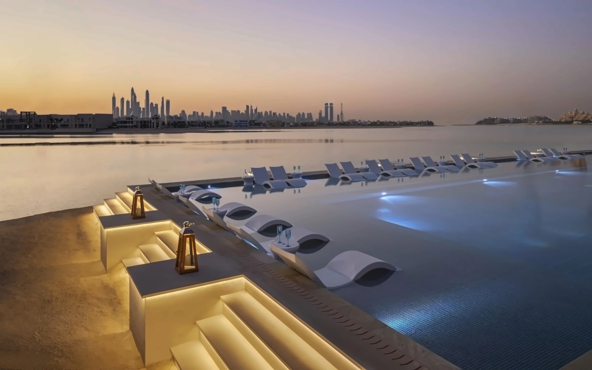 Коли сонце починає спускатися, варто обрати головну сцену для вечора. Один варіант — залишитися в місті й піднятися вище хмарочосів. Cloud 22 в Atlantis The Royal — це інфініті-басейн із відкритою панорамою на Дубай. У темний час доби тут проходять шоу зі світлом і музикою, що створюють майже космічну атмосферу. Це ідеальне місце, щоб замовити келих вина чи коктейль, роздивлятися вогні міста й думати, як багато сценаріїв може вмістити одна подорож.