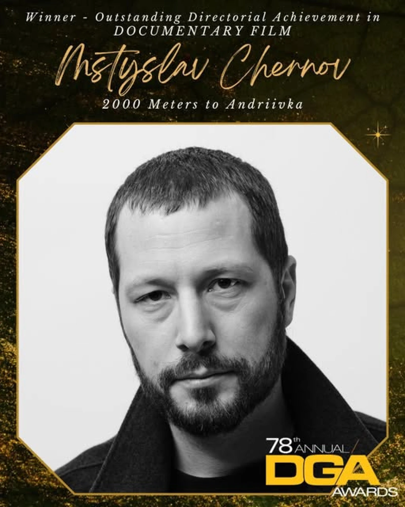 Мстислава Чернова відзначили в категорії «Видатне режисерське досягнення в документальному кіно» за стрічку «2000 метрів до Андріївки». Нагадуємо, що у 2024 році він здобув перемогу в цій же номінації з фільмом «20 днів у Маріуполі», що також отримав премію «Оскар».